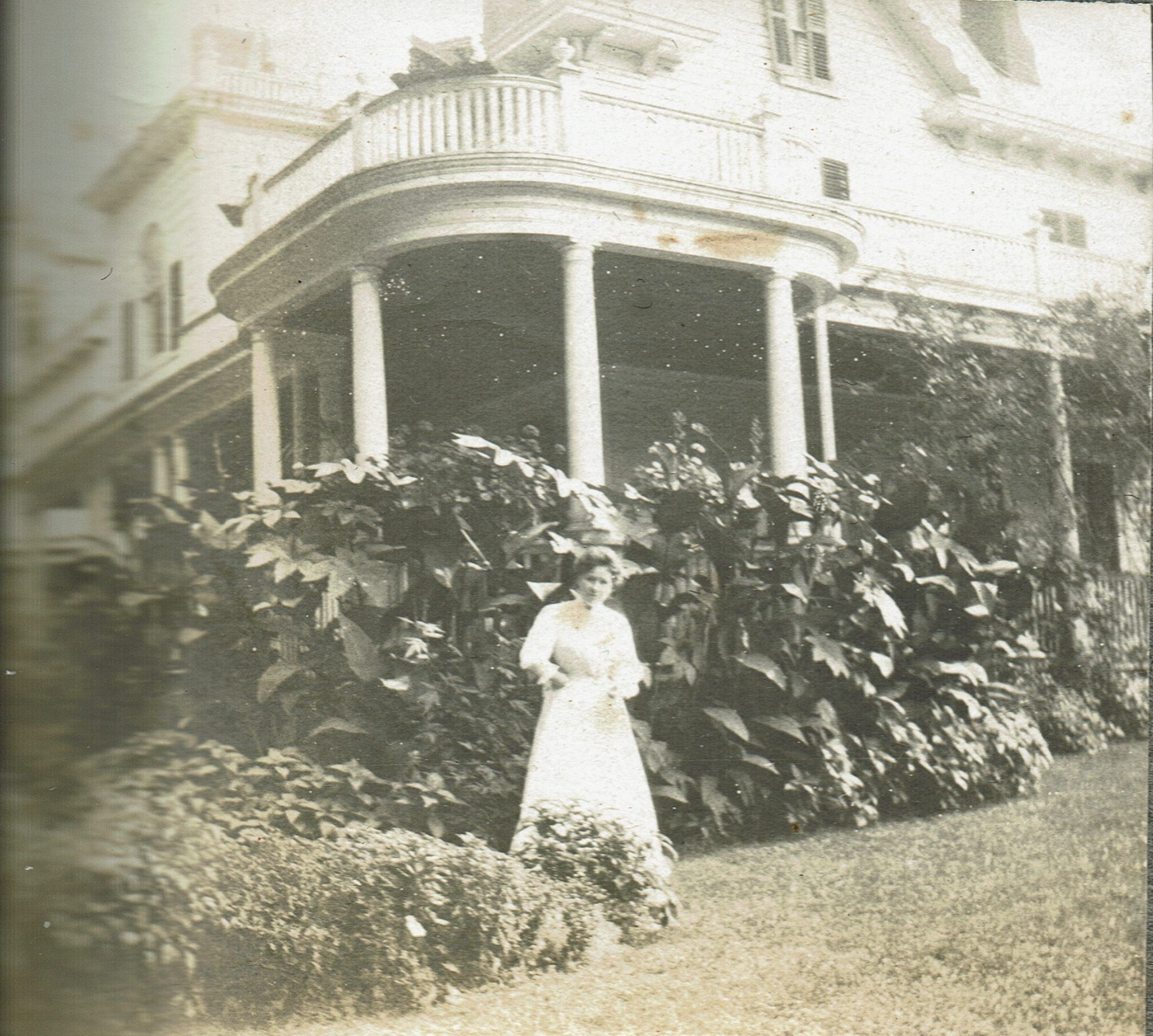 Female standing outside the house near garden. Marshall-Schmidt Alburm, page 47, lower left image.Collection