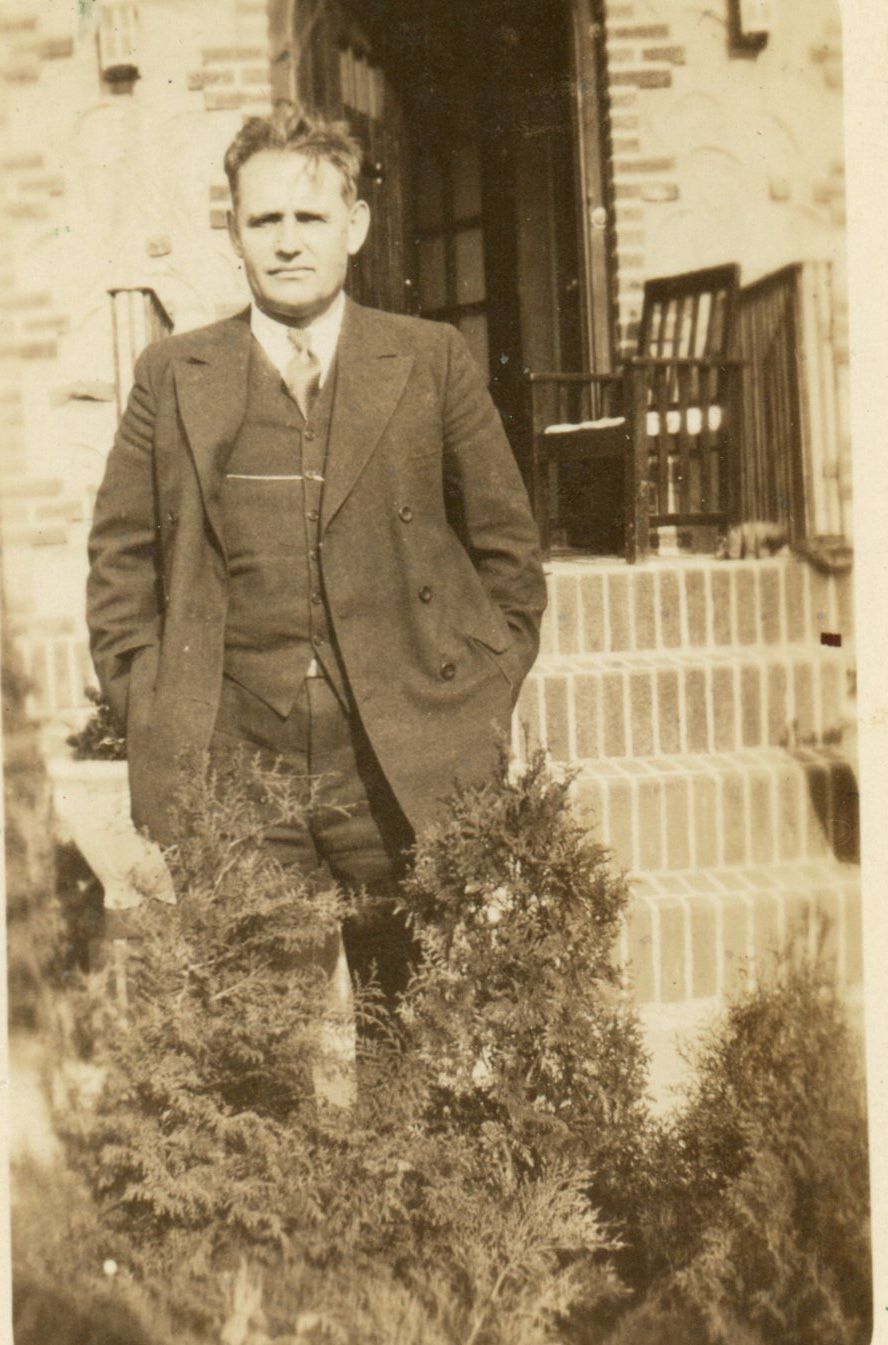 Photograph of William Peter Mangold outside his house at Whittingham Terrace.Photograph Details