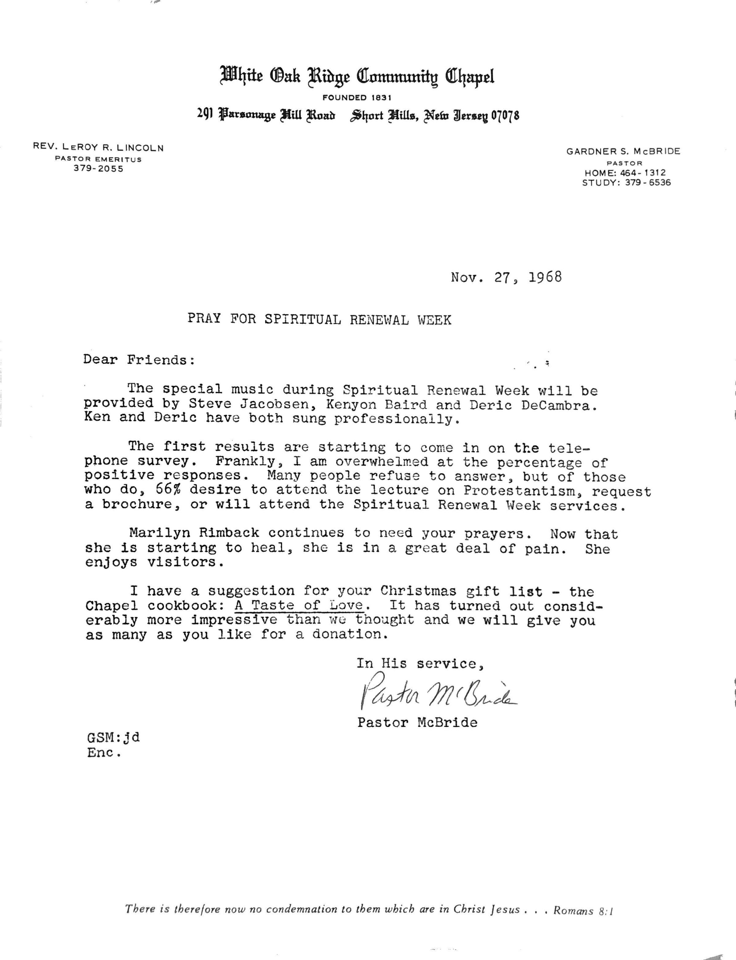 93 letters addressed to and written by members of the White Oak Ridge Chapel between 1871 and 1977.Acquisition