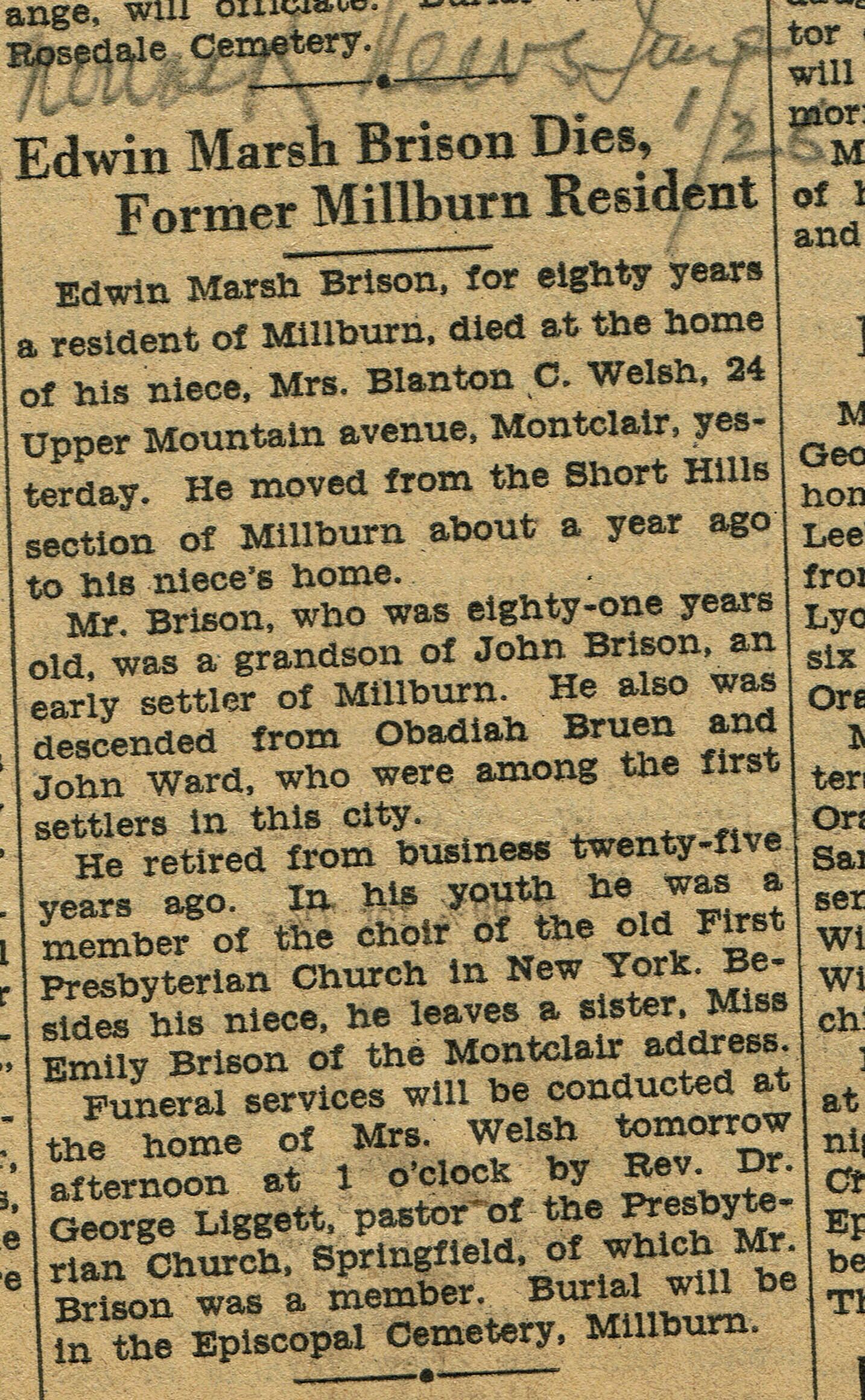 Brison: Edwin Marsh Brison Obituary, Newark News, 1926