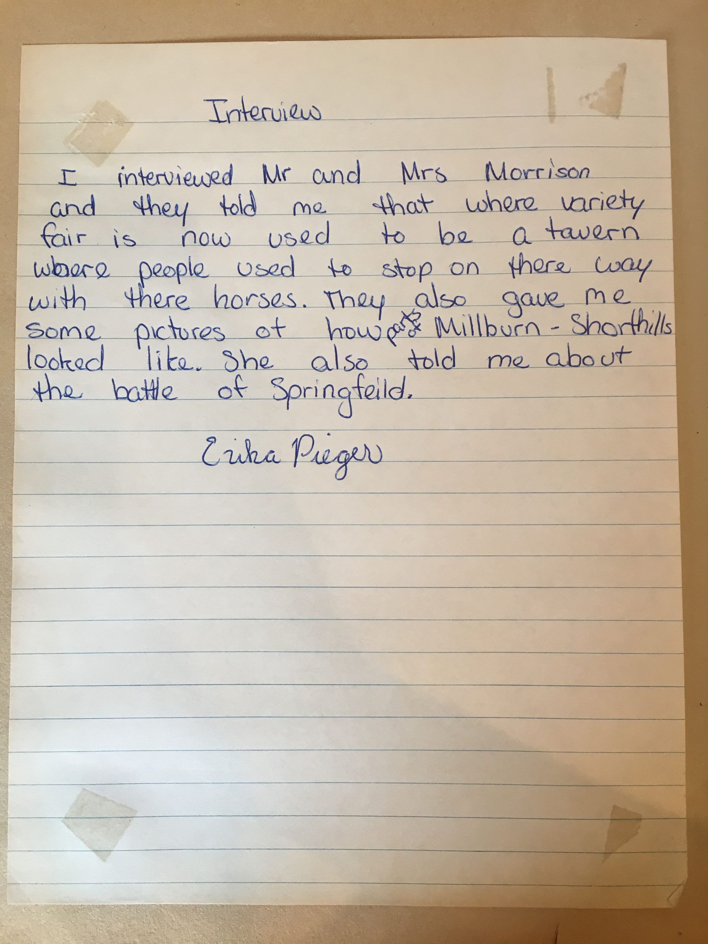Interview with Mr. and Mrs. Ralph Morrison by Erika Pieger.