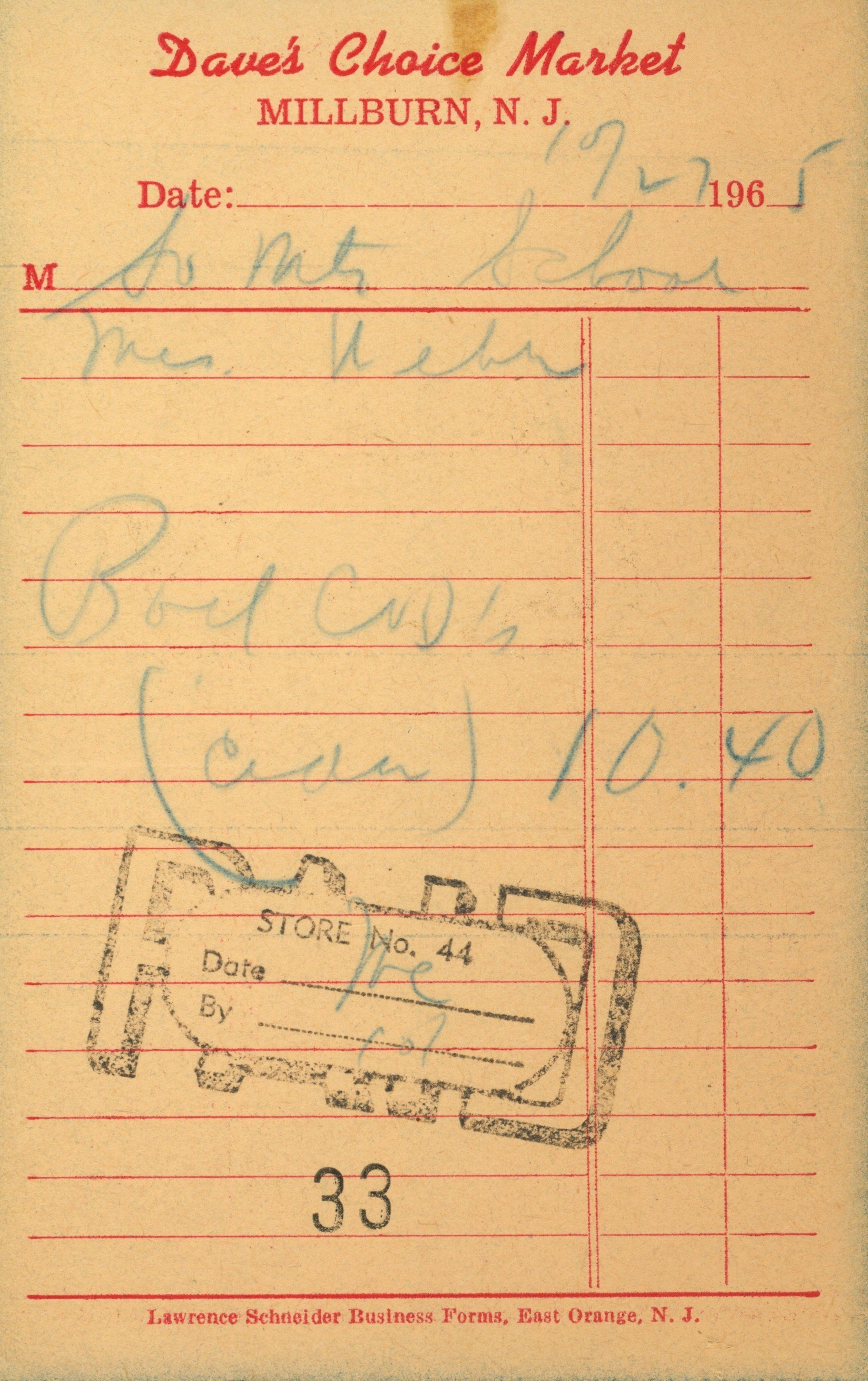 Dave's Market: Receipts for PTA Refreshments, 1962-1966Entry/Object ID