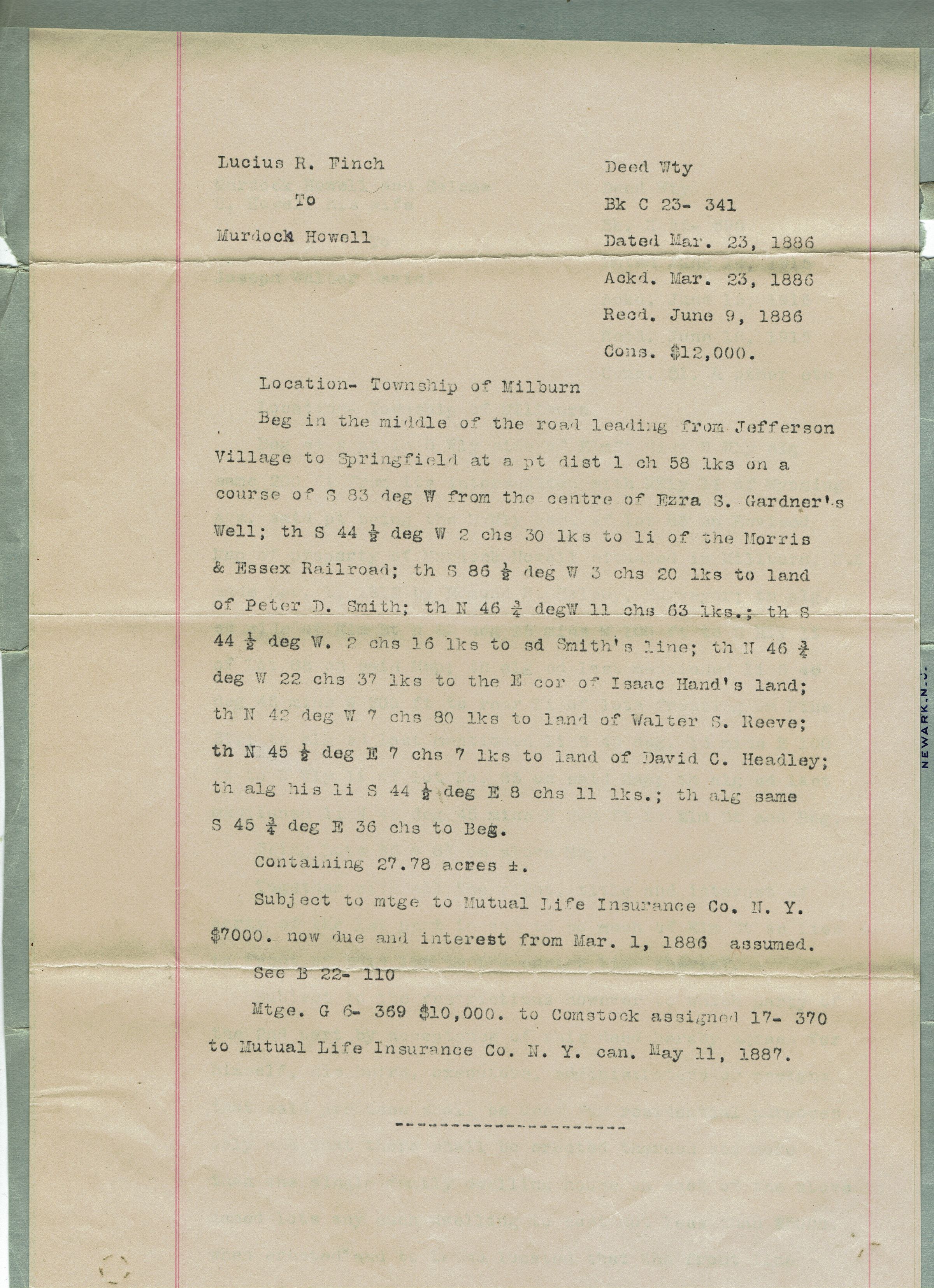 Abstract of the Title of Joseph Walter Davis to 82 Elm Street, June 9, 1886.Collection