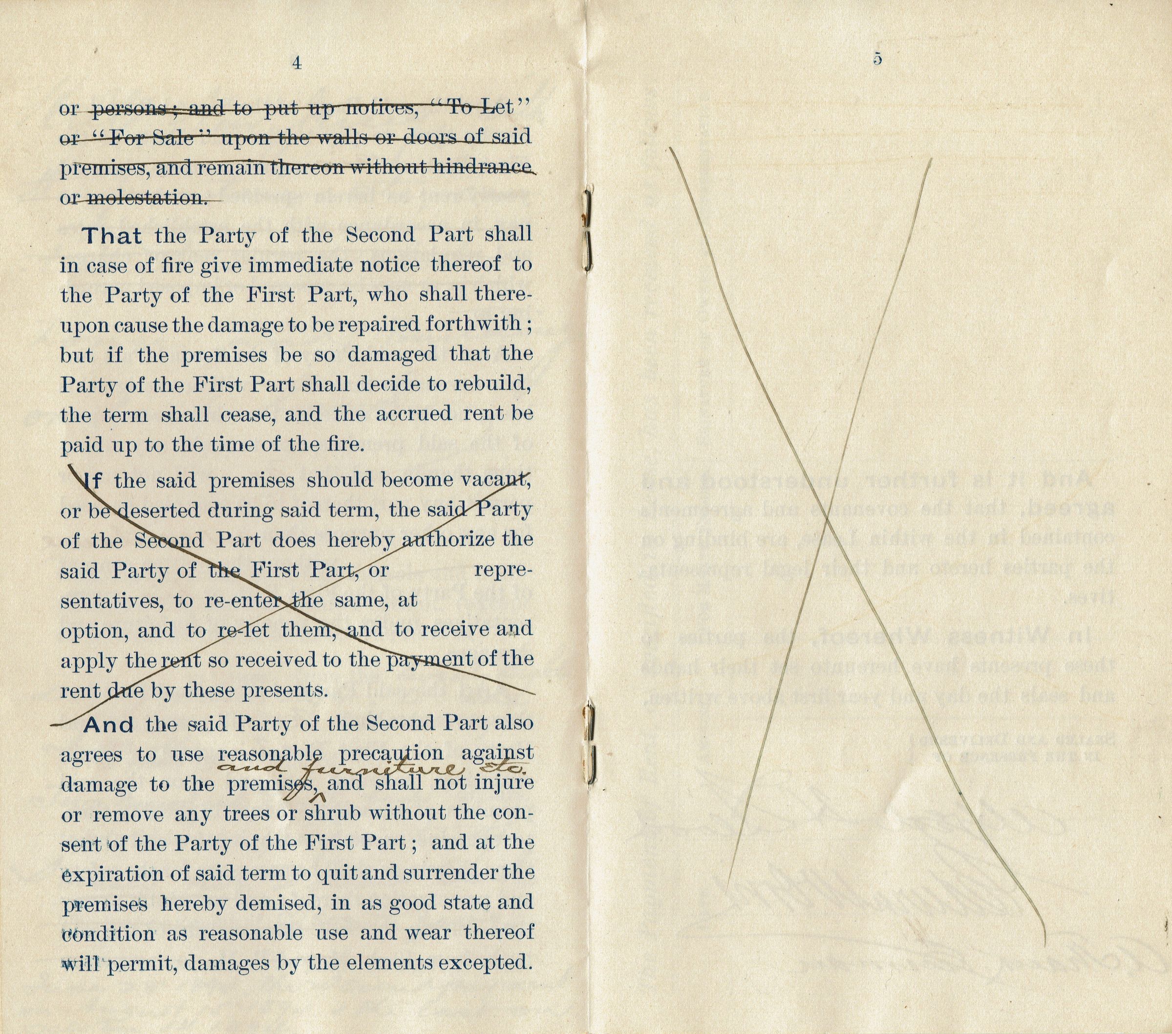 Eight-page lease for Alfred H. Blood's dwelling house and lands situated on the Old Short Hills Road at Old Short Hills, NJ with the furniture, etc., contained in the house and land to Edwin W. Orvis from June 28, 1894 to October 1, 1894. The rental fee for that period was $225.00.Collection