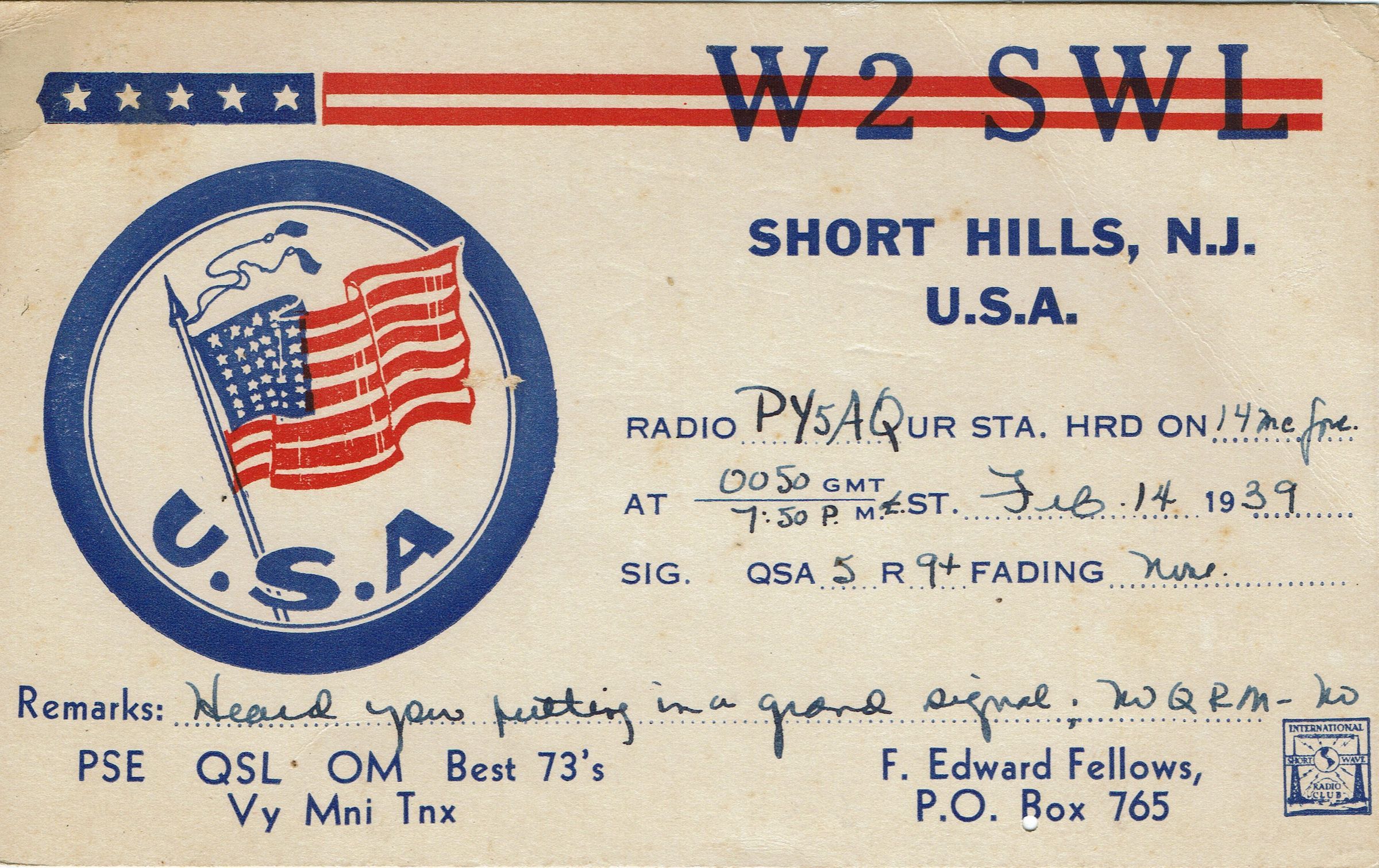 W2 SWL is F. Edward Fellows from Short Hills, NJ.Collection