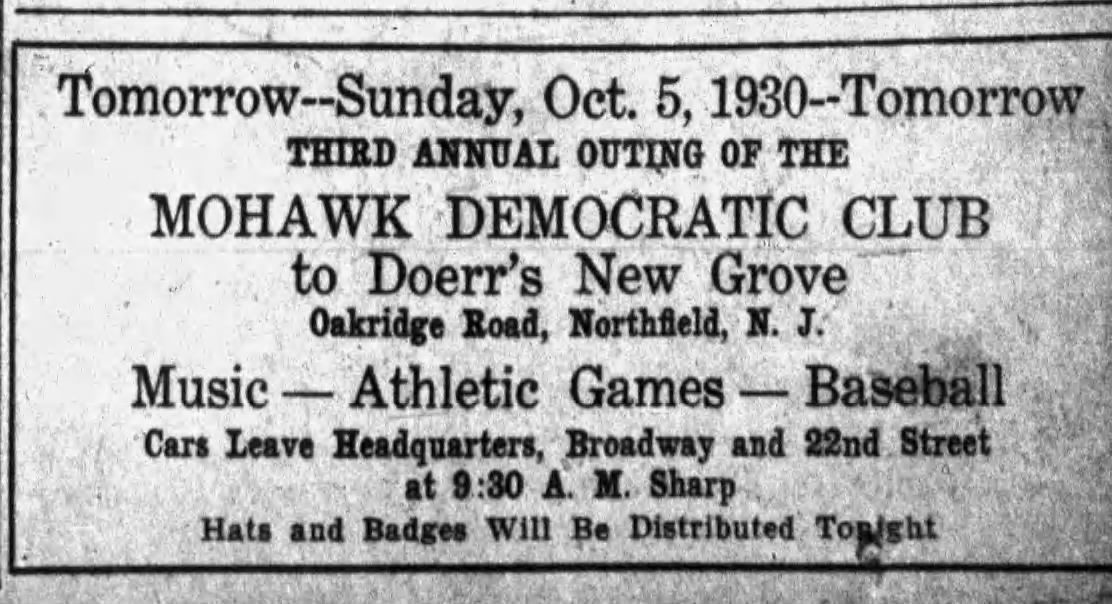 Glass mug with a chip found at the site of the former Doerr's Grove property, at the end of Rippling Brook Road. Doerr's Grove was a popular site for community outings, picnics and field games for clubs & organizations in the White Oak Ridge area of Millburn from 1928-1960. Located near the Livingston border, the location of the Grove was often listed as Livingston or Northfield. Early advertisements give the address as Oakridge Road.Acquisition