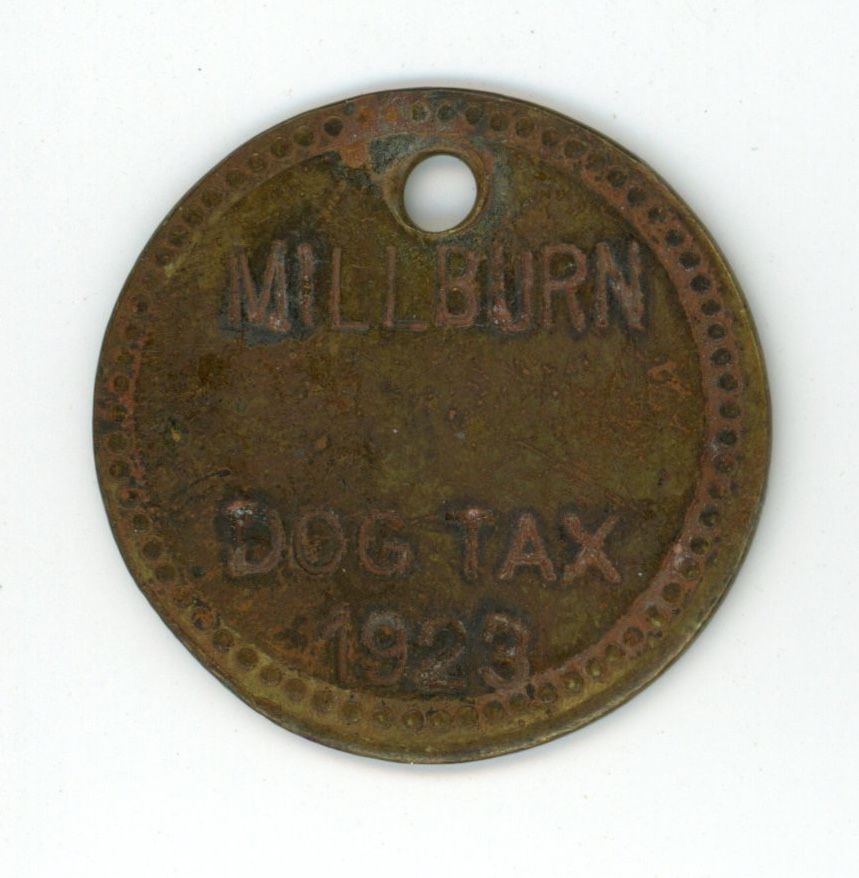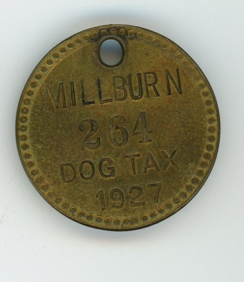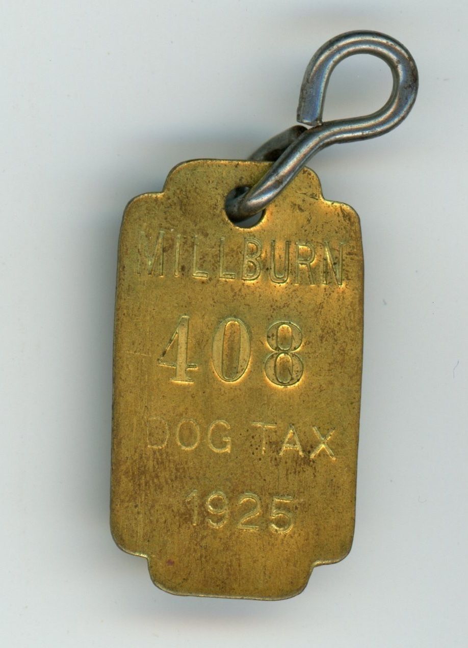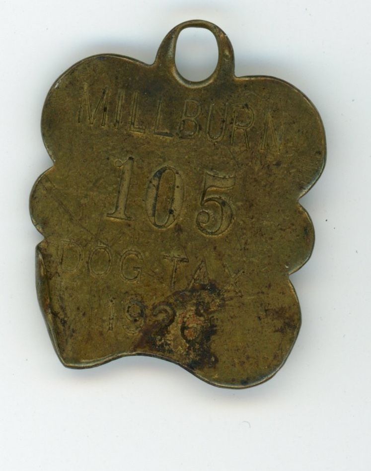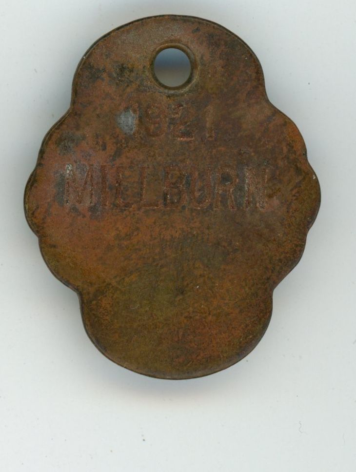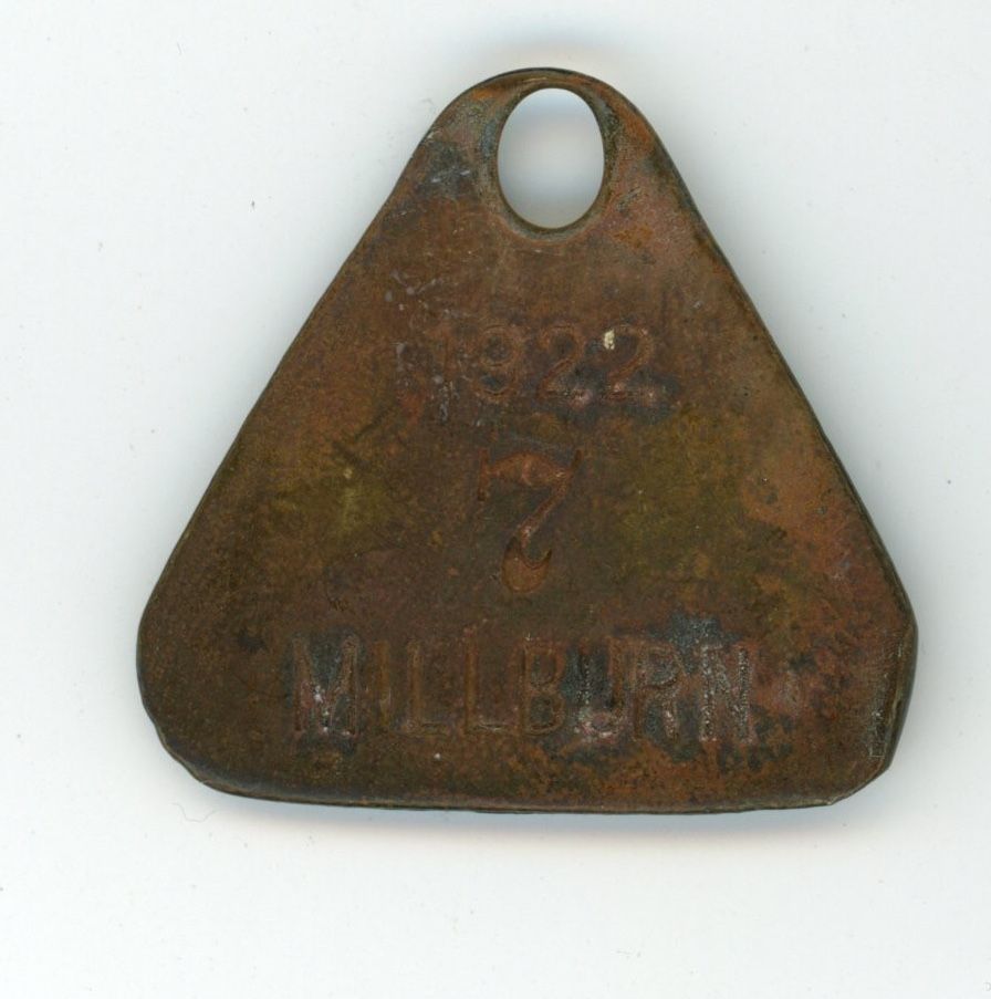 Eight Millburn Township Dog License tags, 1920-