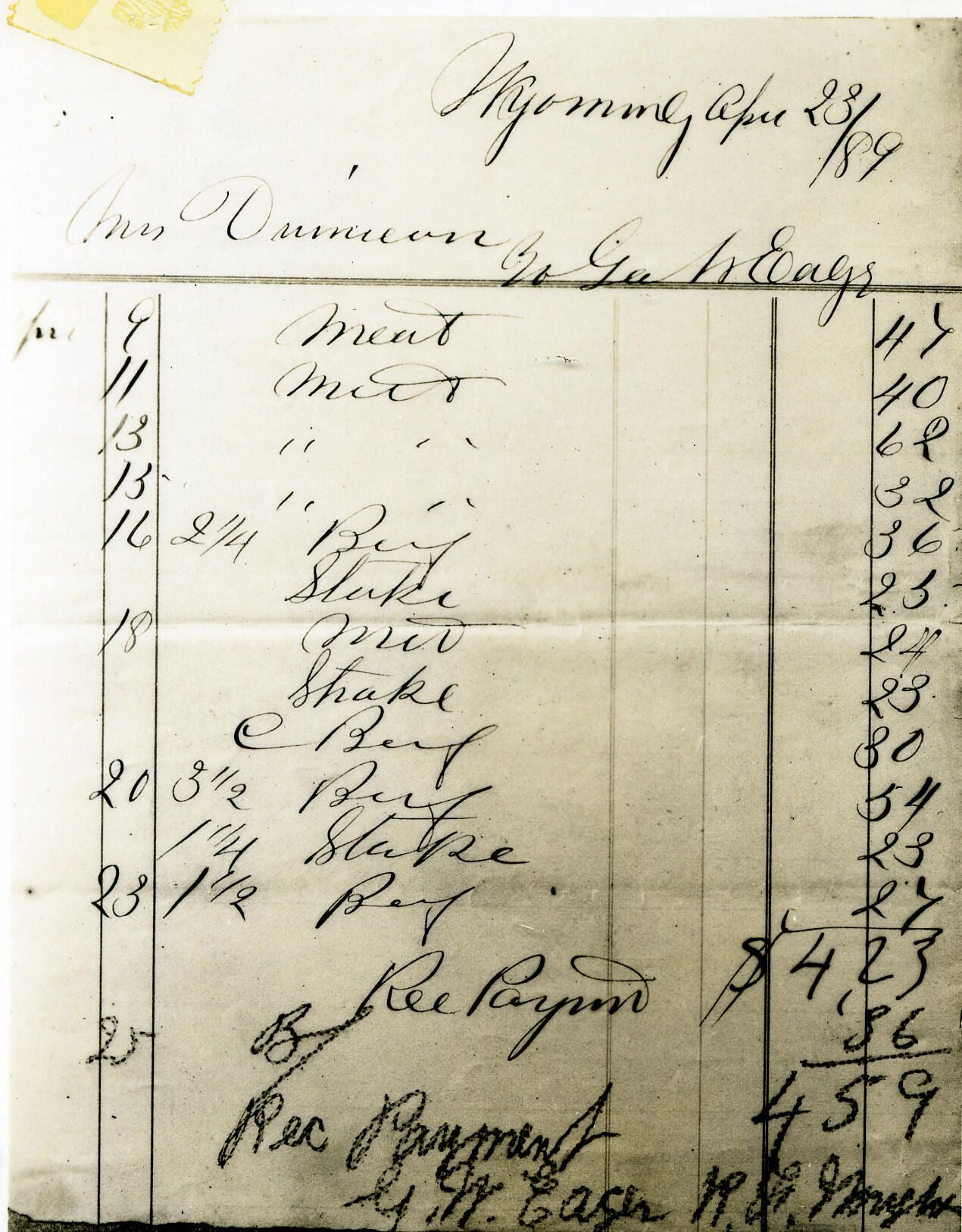 Dunican: Mrs. John Dunican Invoice from George W. Eager, April 23, 1889Entry/Object ID