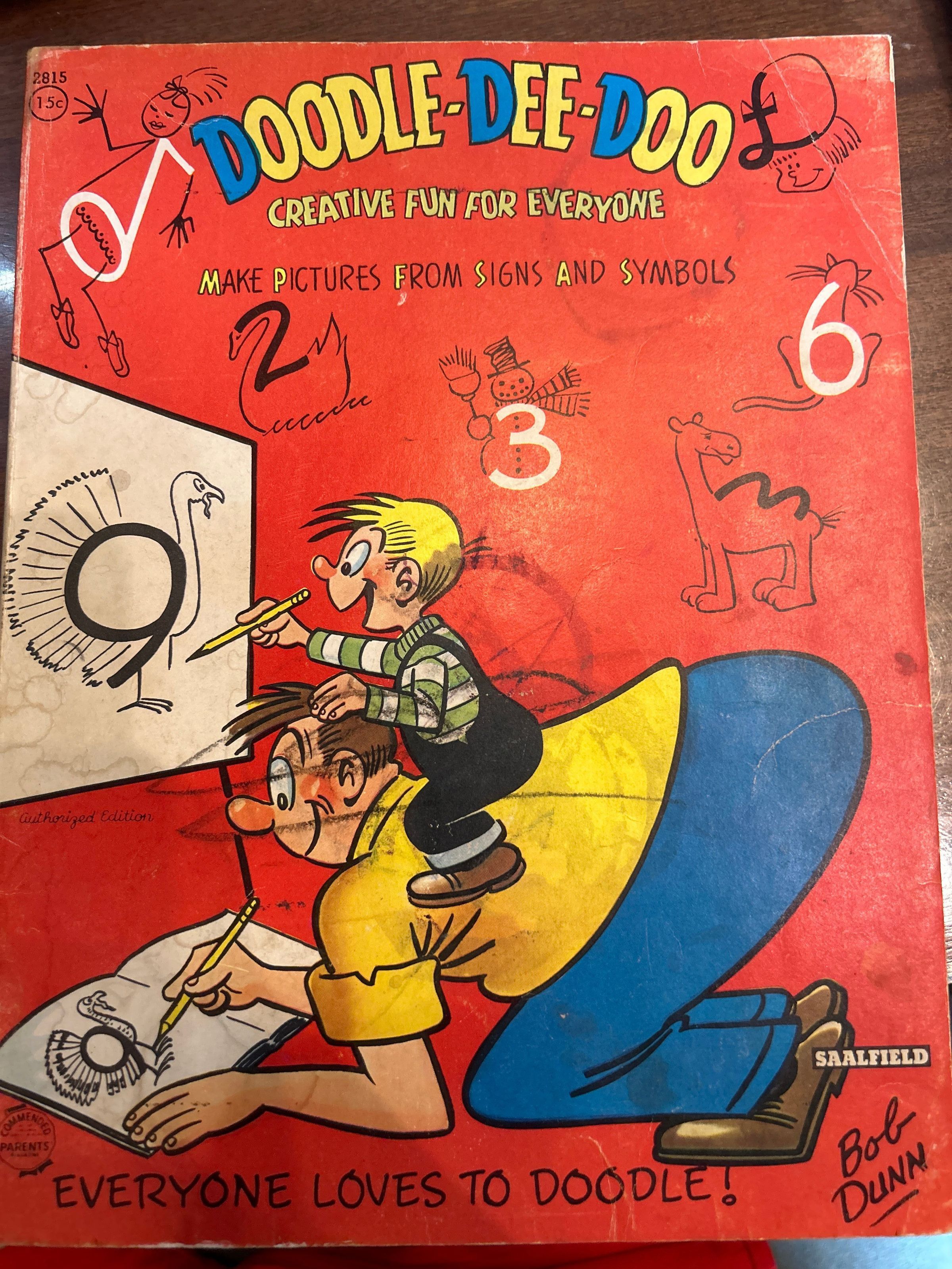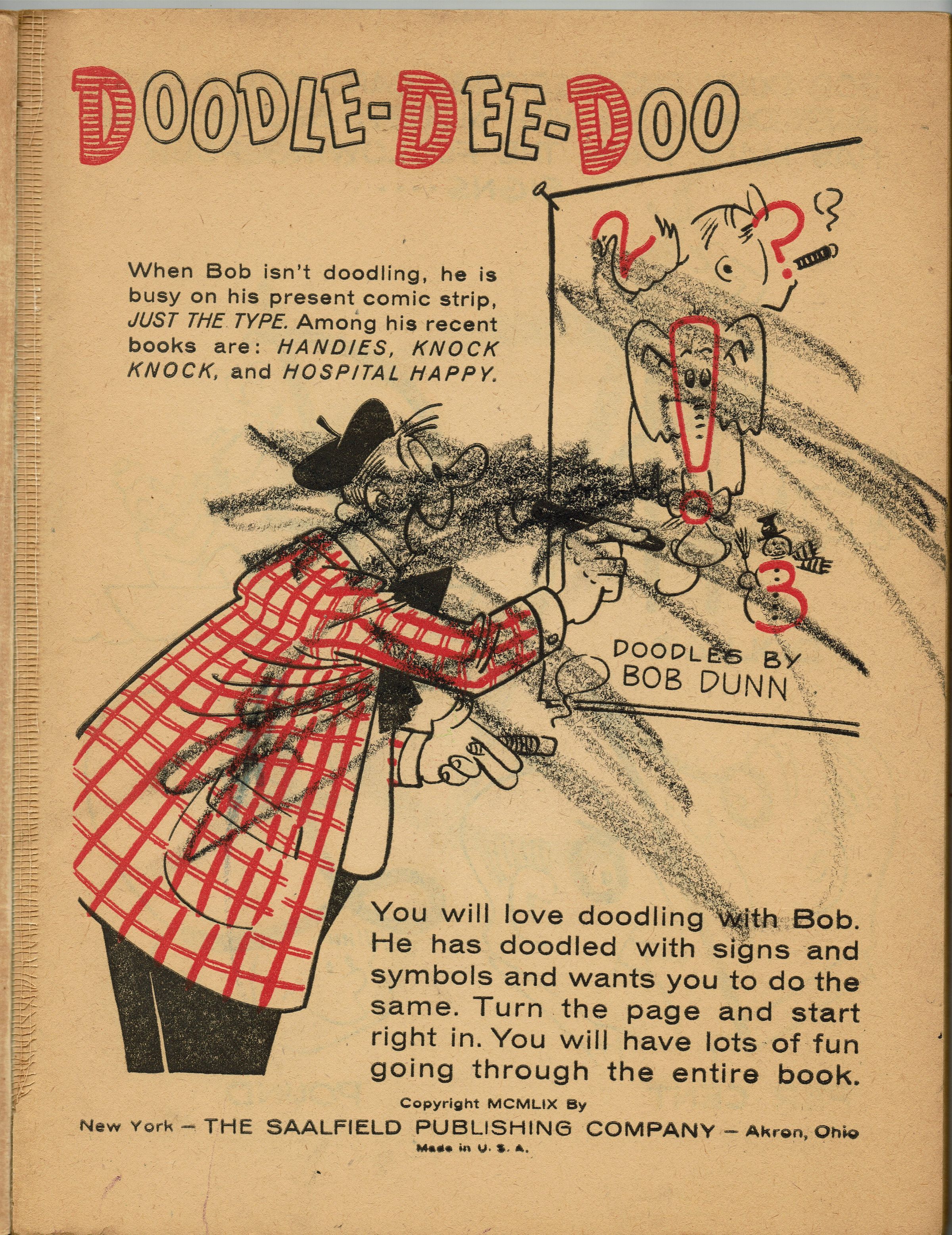 Bob Dunn, "Doodle-Dee-Doo: Creative Fun for Everyone. Make Pictures from Signs and Symbols" Activity Book. New York: The Saalfield Publishing Company, 1959. Softcover.Collection
