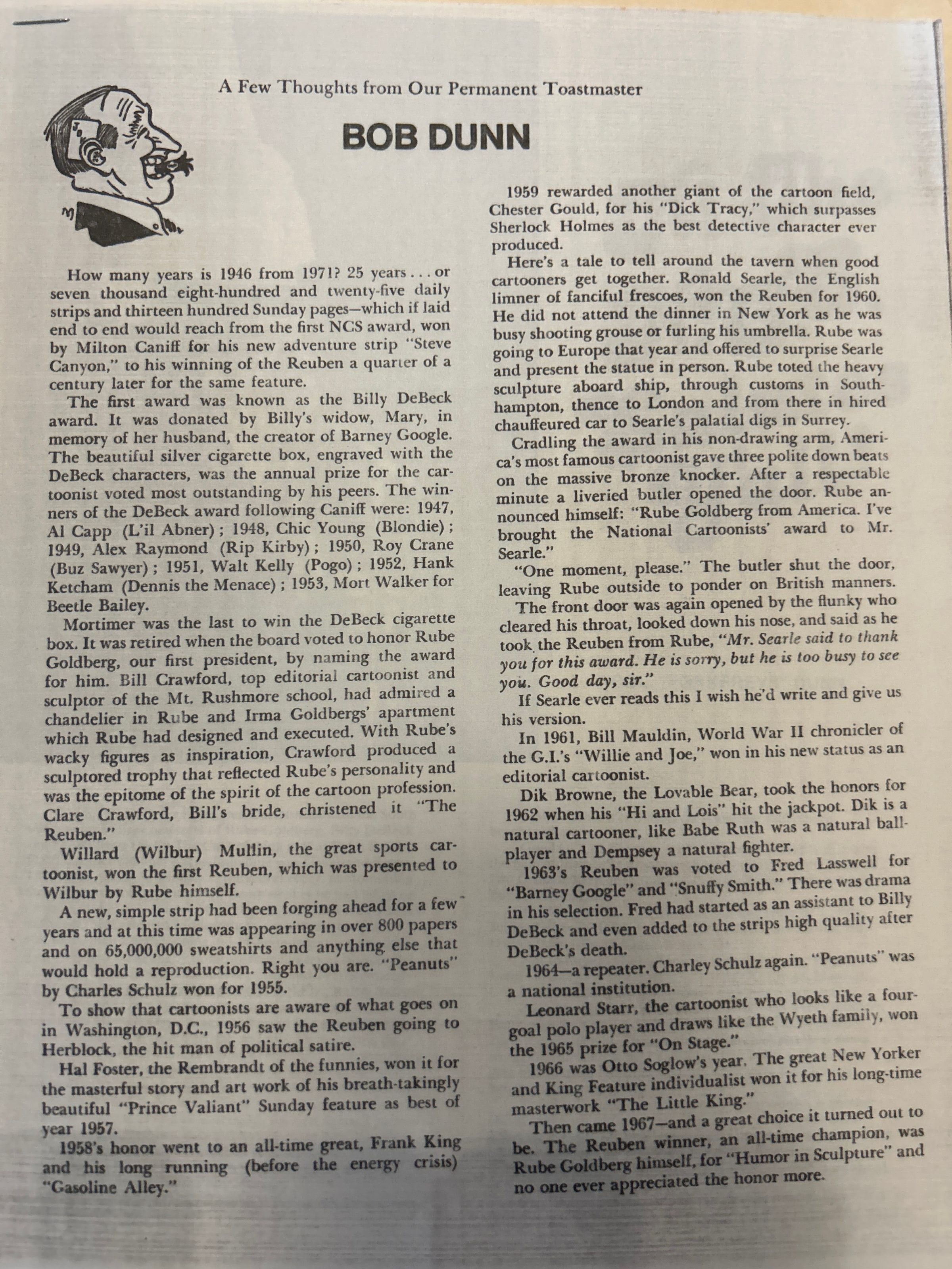 Photocopy of Speech from Bob Dunn at Reuben Goldberg DinnerCollection