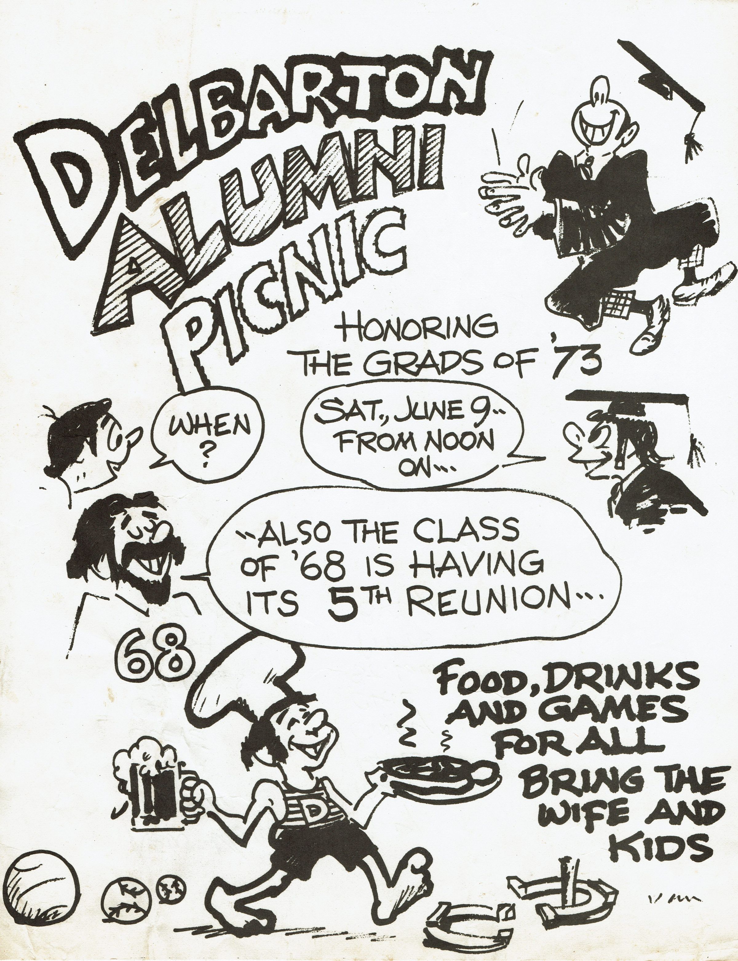 Flyer advertising the 1973 Delbarton alumni picnic, created by Bob DunnCollection