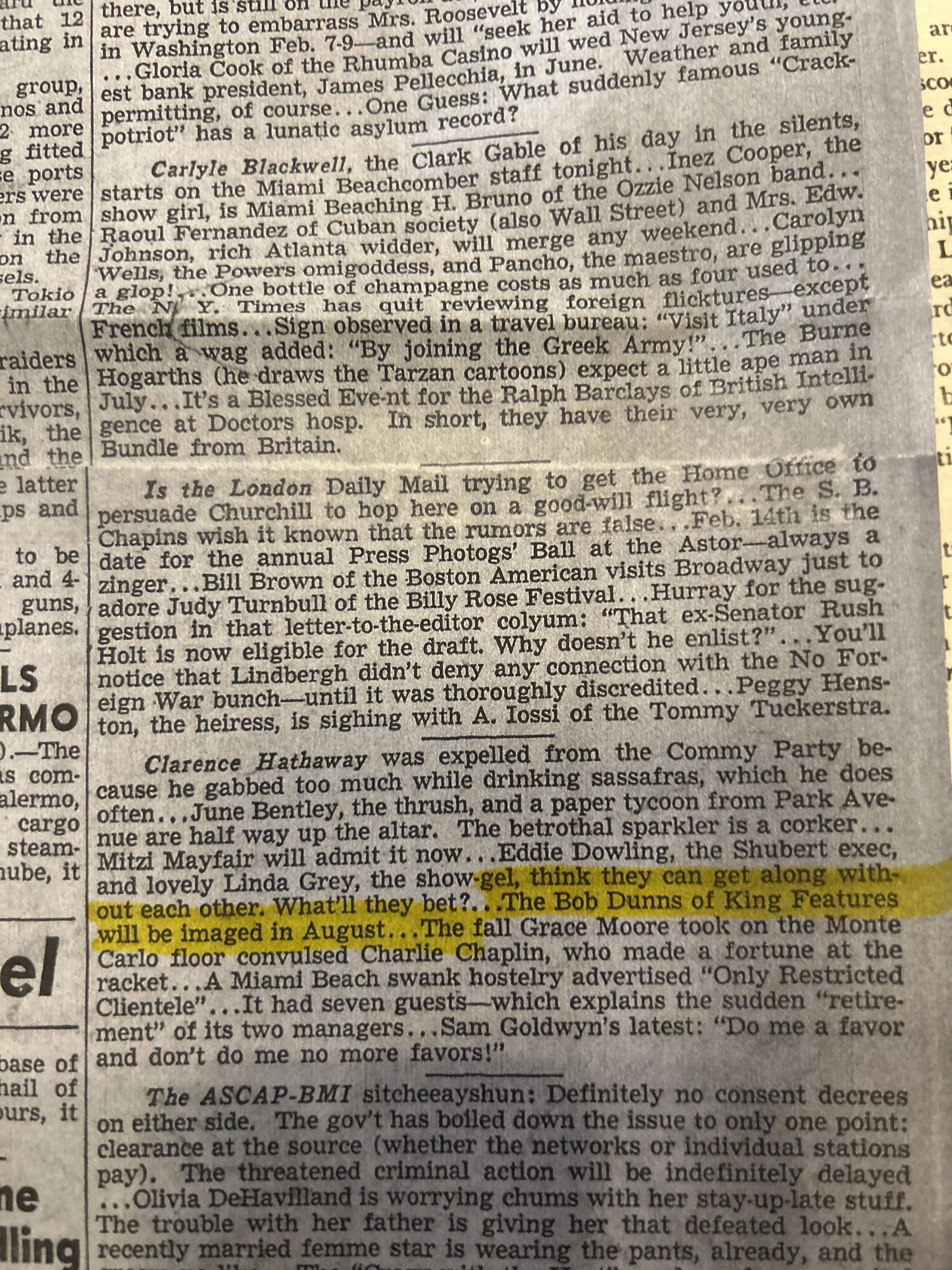 Dunn: Newspaper clipping featuring Bob Dunn, 1941