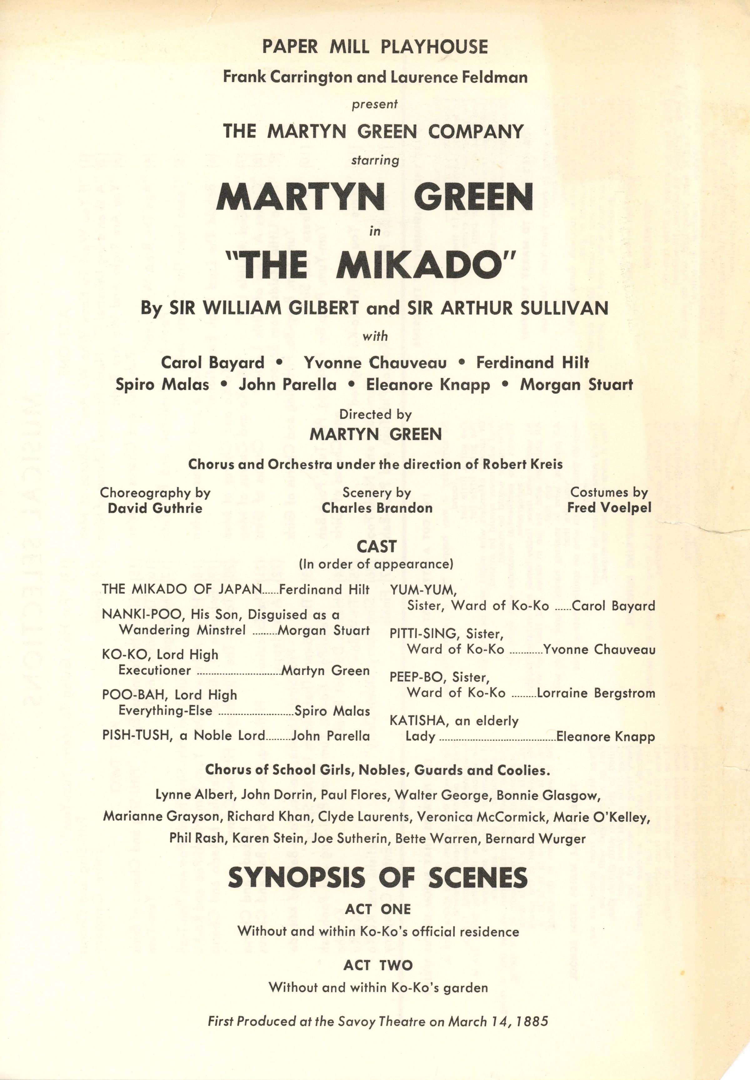 Paper Mill Playhouse: Mikado Program and Libretto,