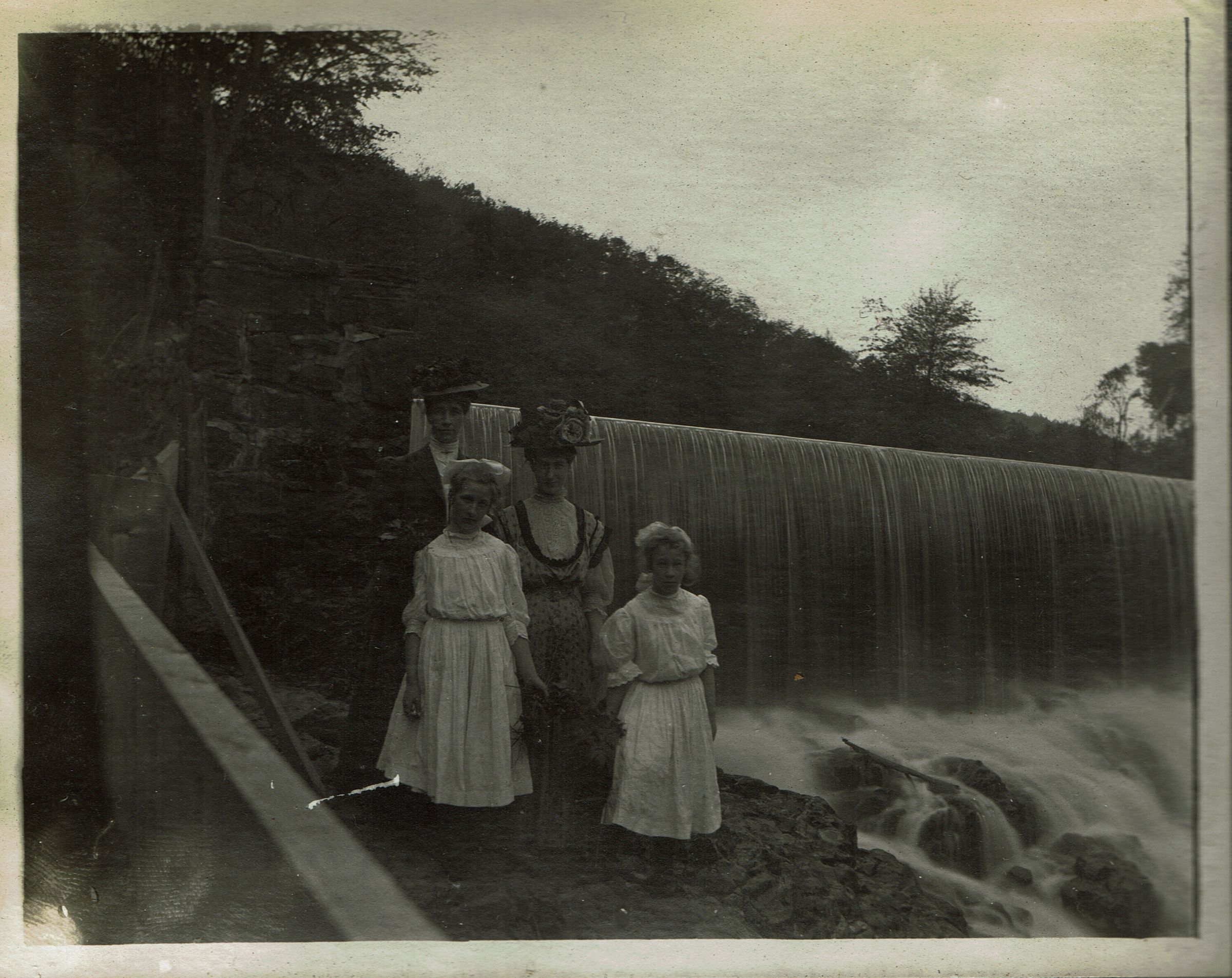 Album photographs date from c. 1908. Page 37, top image. Margaret, Marion, Elizabeth Schmidt-Marshall and another woman by waterfall (Possibly Campbell's Falls).Collection