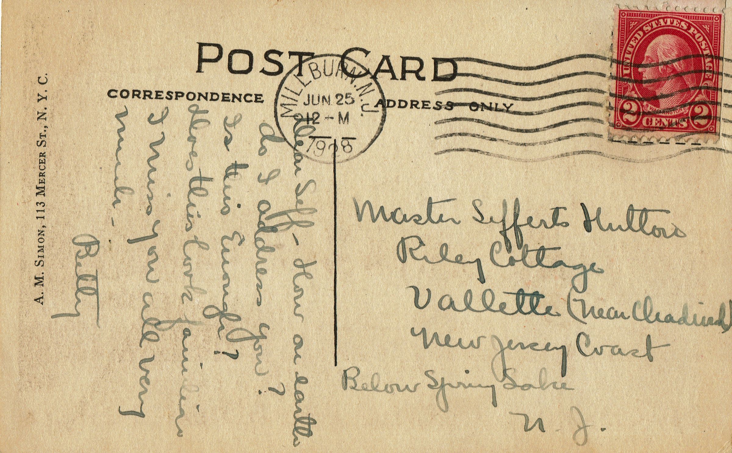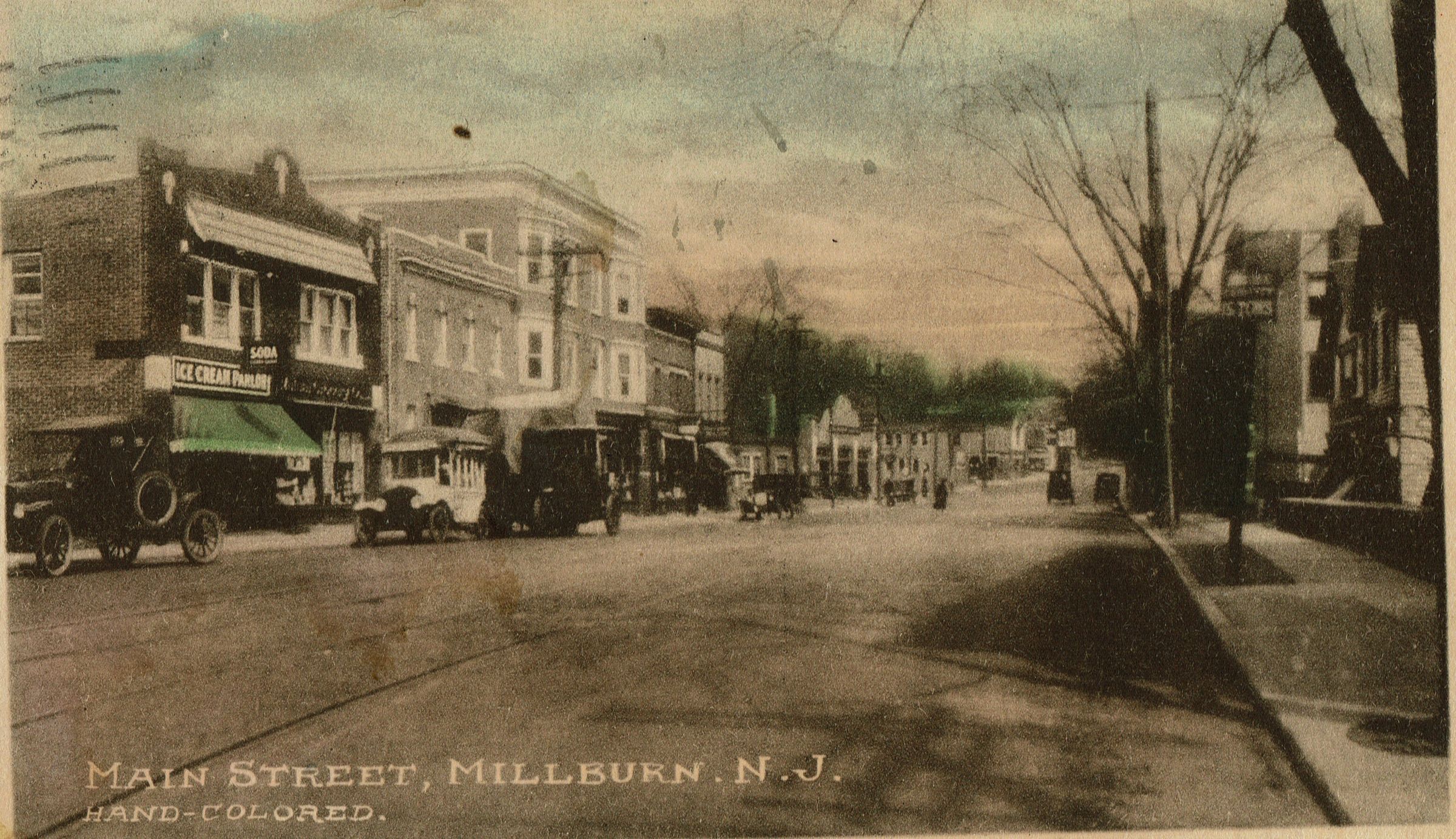 Main Street Millburn, Hand-Colored Post Card, postmarked 1928
