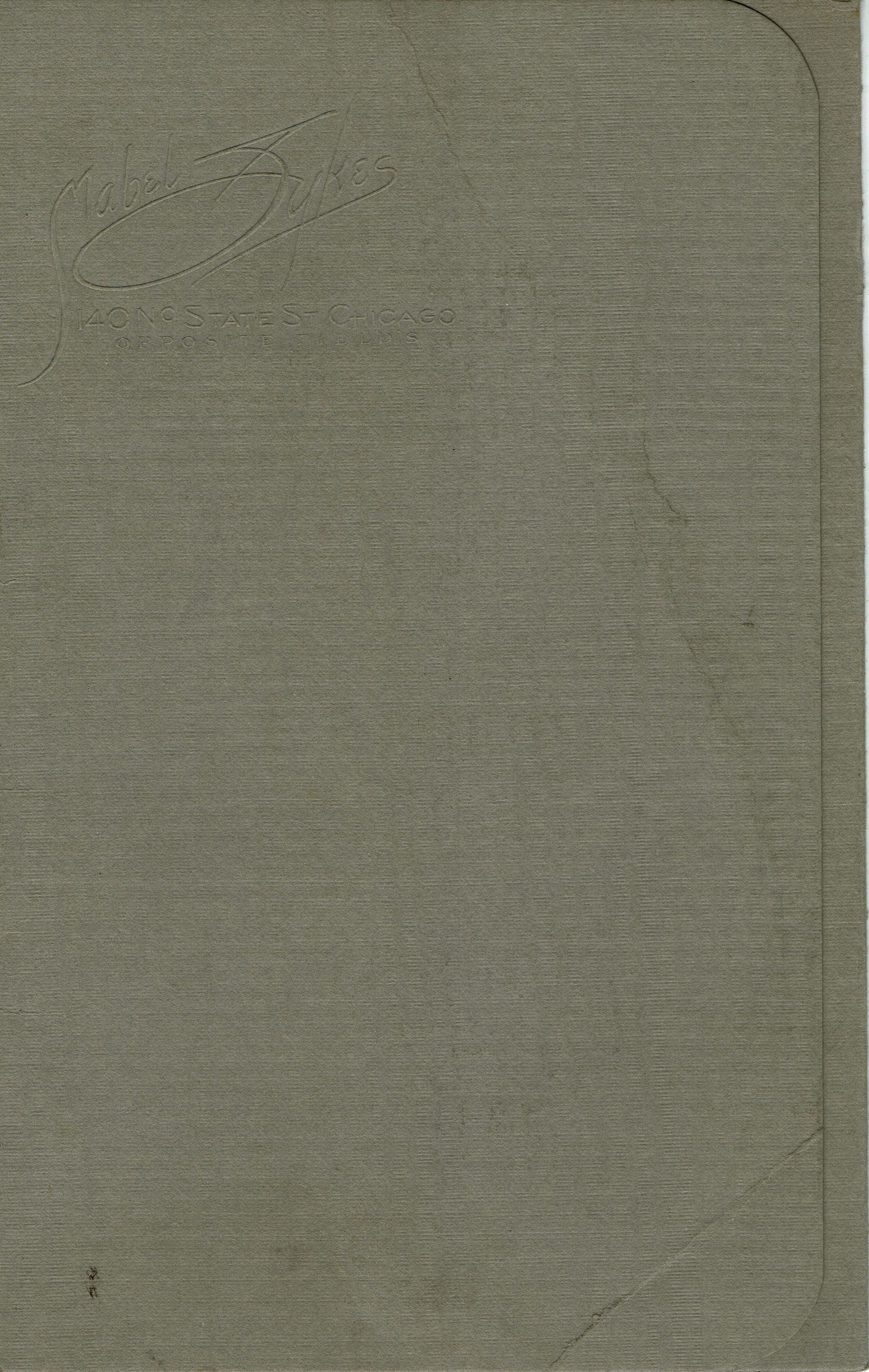 Photograph of unidentified baby on cream paper with the name photographer Mabel Sykes Chicago embossed. Photograph is in a gray portfolio with Mabel Sykes, 140 No State St Chicago, Opposite Field's.Collection