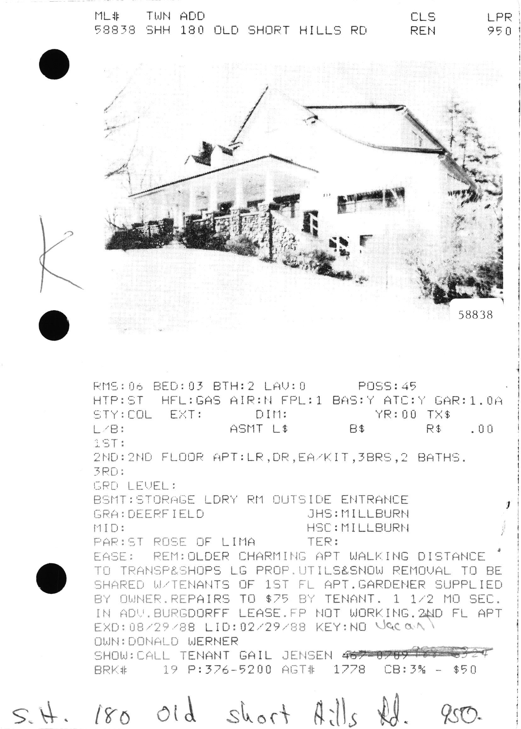 House was at one time owned by August H. D. Evers (c. 1873-1958), owner of the Evers Rehm Company, manufacturers of carbonated beverages in New York. It was liquidated in 1950. August Evers moved to Short Hills in 1919 and is on the 1928 Robinson Map.