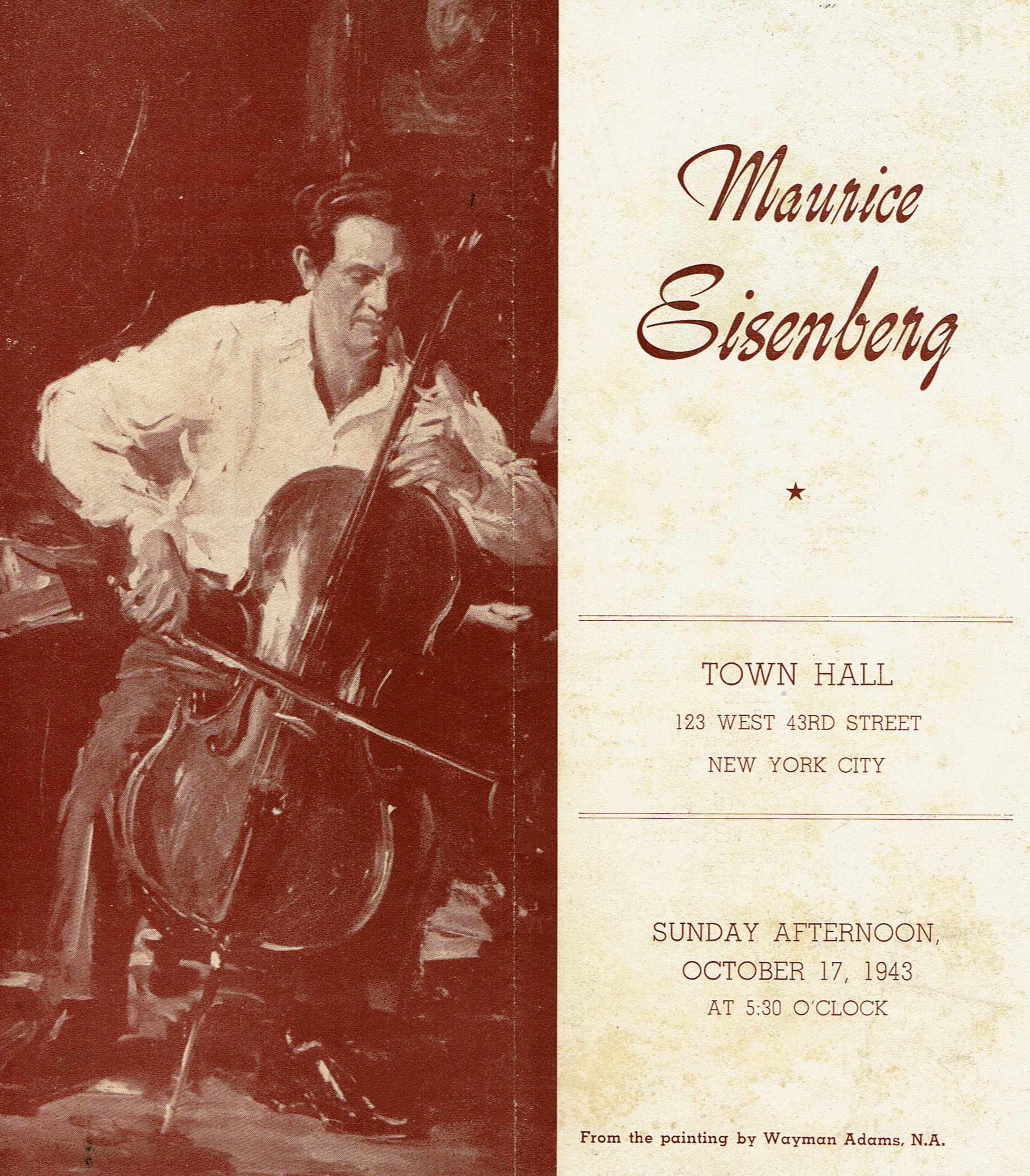 Eisenberg: Maurice Eisenberg Town Hall Concert Program, 1943Entry/Object ID