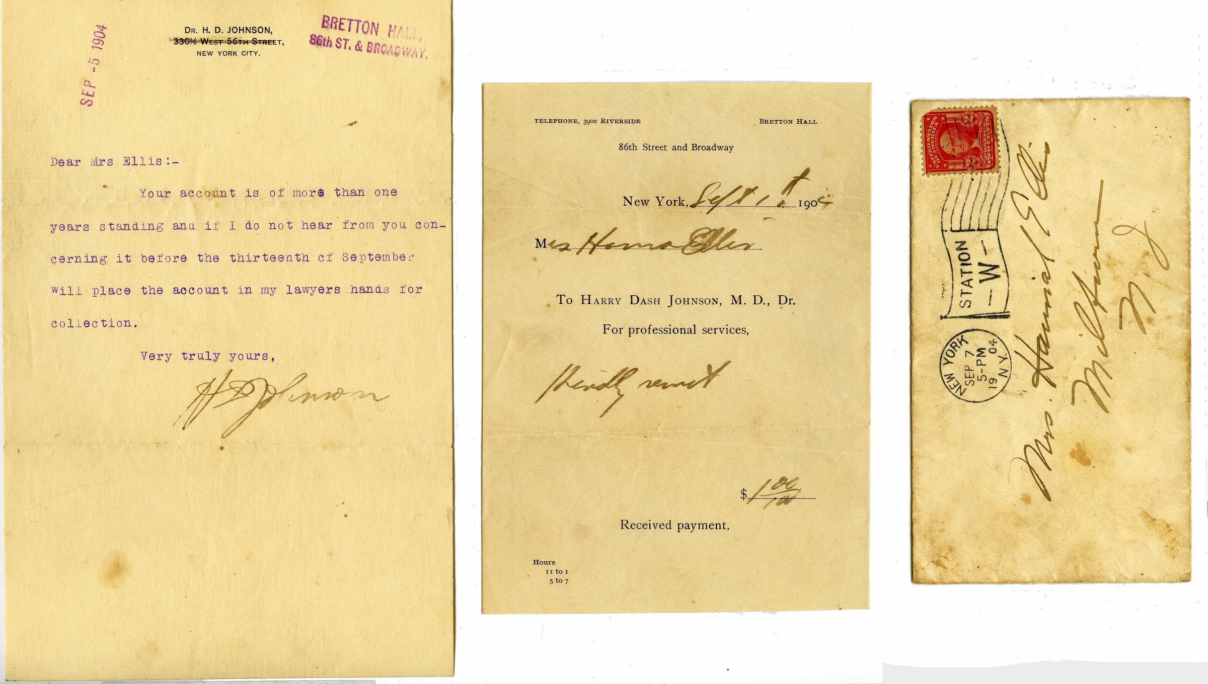 Ellis: Hannah Ellis Overdue Bill from Dr.Johnson,1904