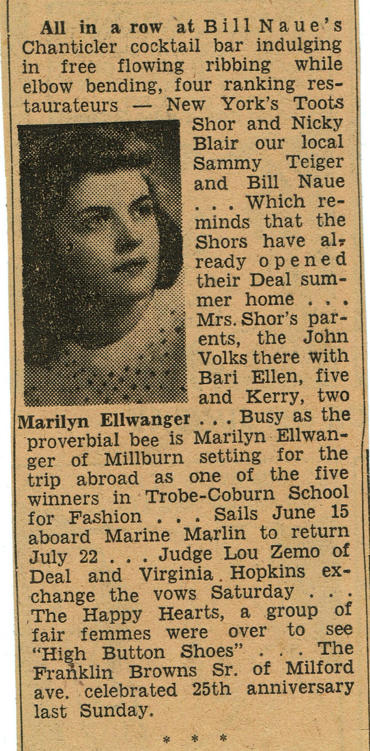 Ellwanger: Marilyn-Wittkop Engagement Notice & School Award