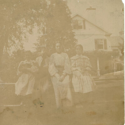The Blood Family lived at 93 Old Short Hills Road. The photograph may show the 3 daughters; Marianne, Juliet, and Mira. There is also a print of the negative, which has the following written on the back: Mrs. Lamont, Mrs. Lamont A. Warren (?). The house was built in 1856 and was owned by Abraham J. Parkhurst.Photograph Details
