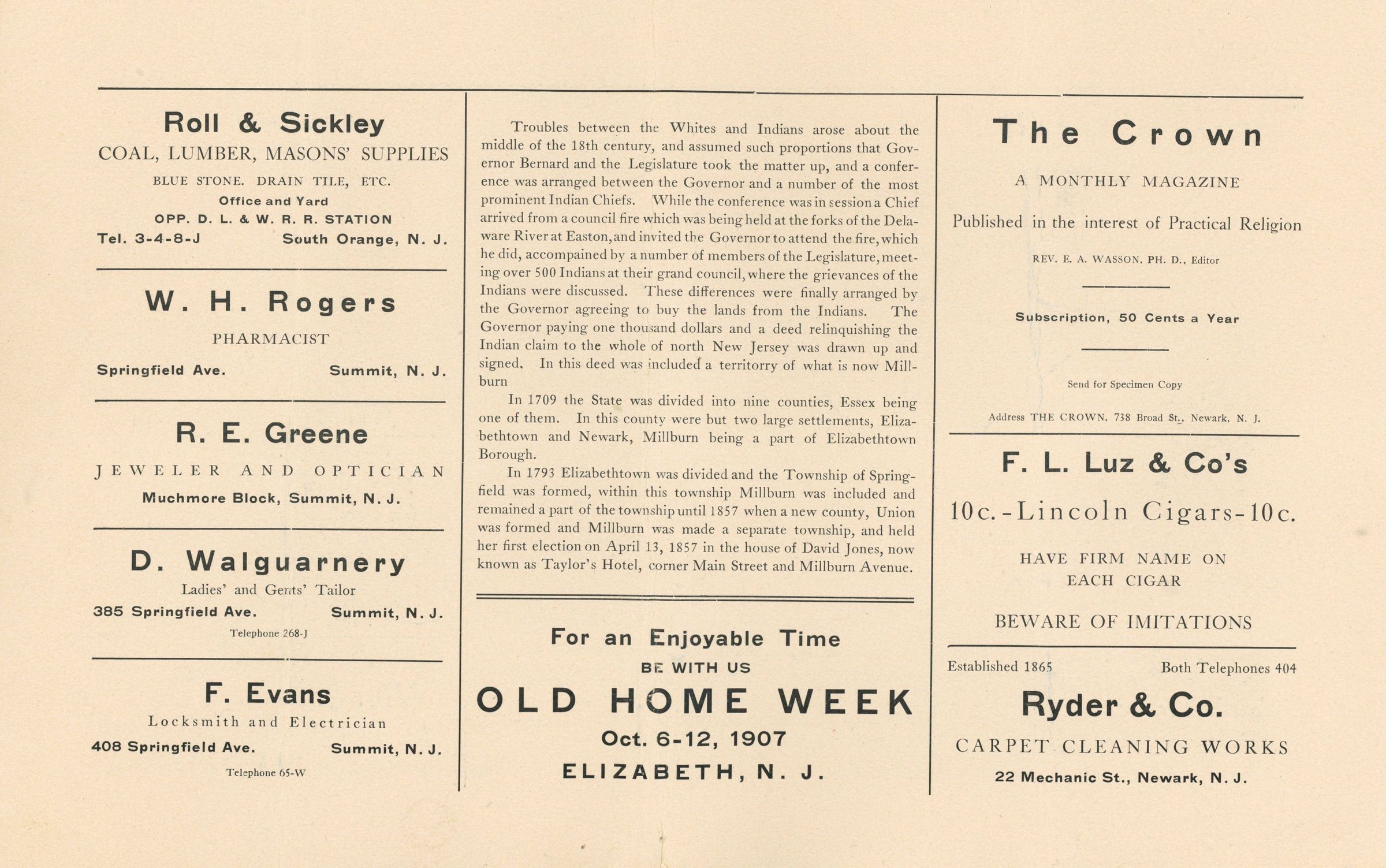 Semi-Centennial Celebration: Millburn Semi-Centennial Celebration Program, 1907