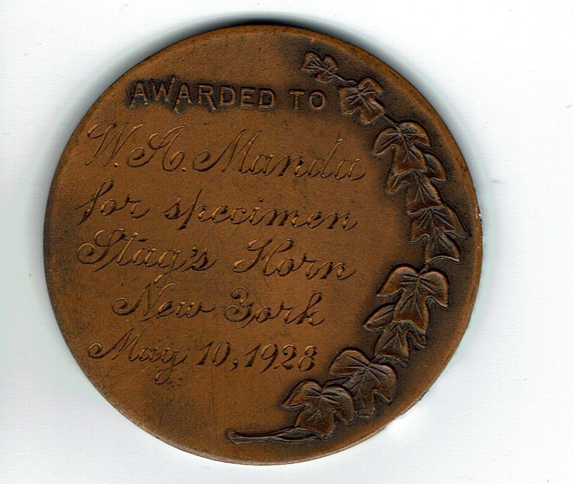 Bronze medal awarded to W.A. Manda, of Pitcher and Manda, from the Horticultural Society of New York for specimen Stags Horn, New York, May 10, 1928.Acquisition