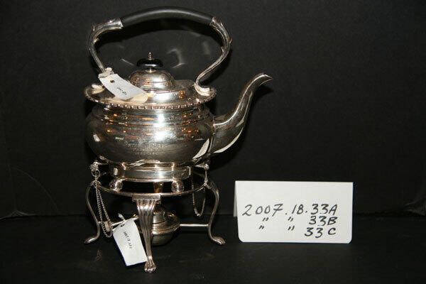 Woman's Club of Millburn: Silverplate water kettle with warmer and stand from Woman's Club of MillburnEntry/Object ID