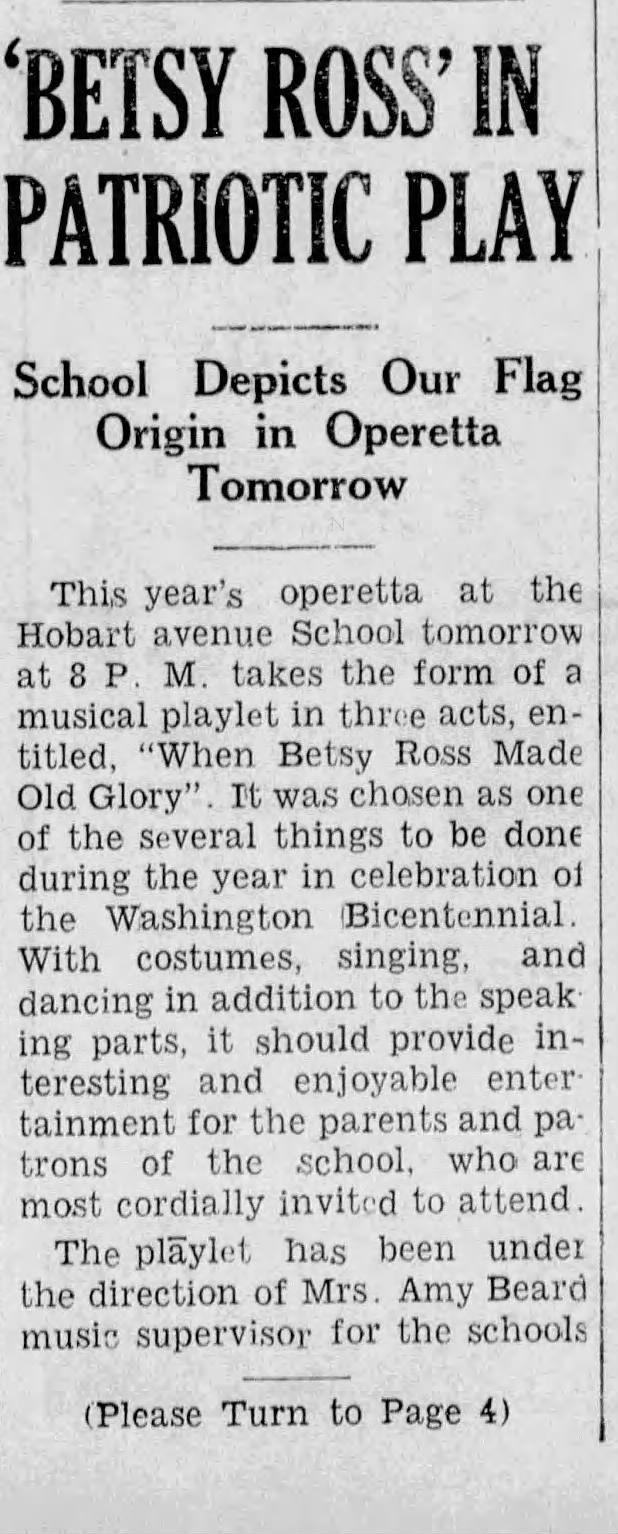 Photographs of Betty Faddis dressed in her costume for the Short Hills School production of "When Betsy Ross Made Old Glory," on April 22, 1932. The production was one of the events commemorating the bicentennial of George Washington's birth, which was celebrated throughout the town.Betty was one of the female students who played the Thirteen Colonies.