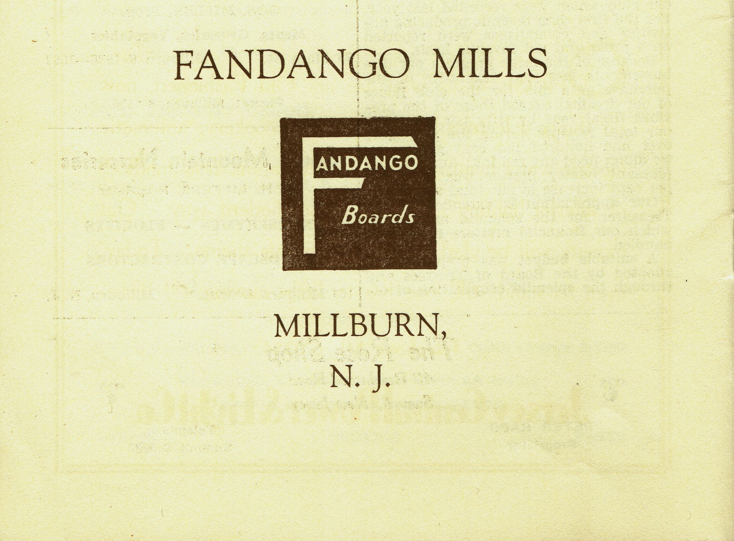 Advertisement for Fandango Boards and Fandango Mills from The Bulletin of the Millburn Women's Club, June 1936.Acquisition