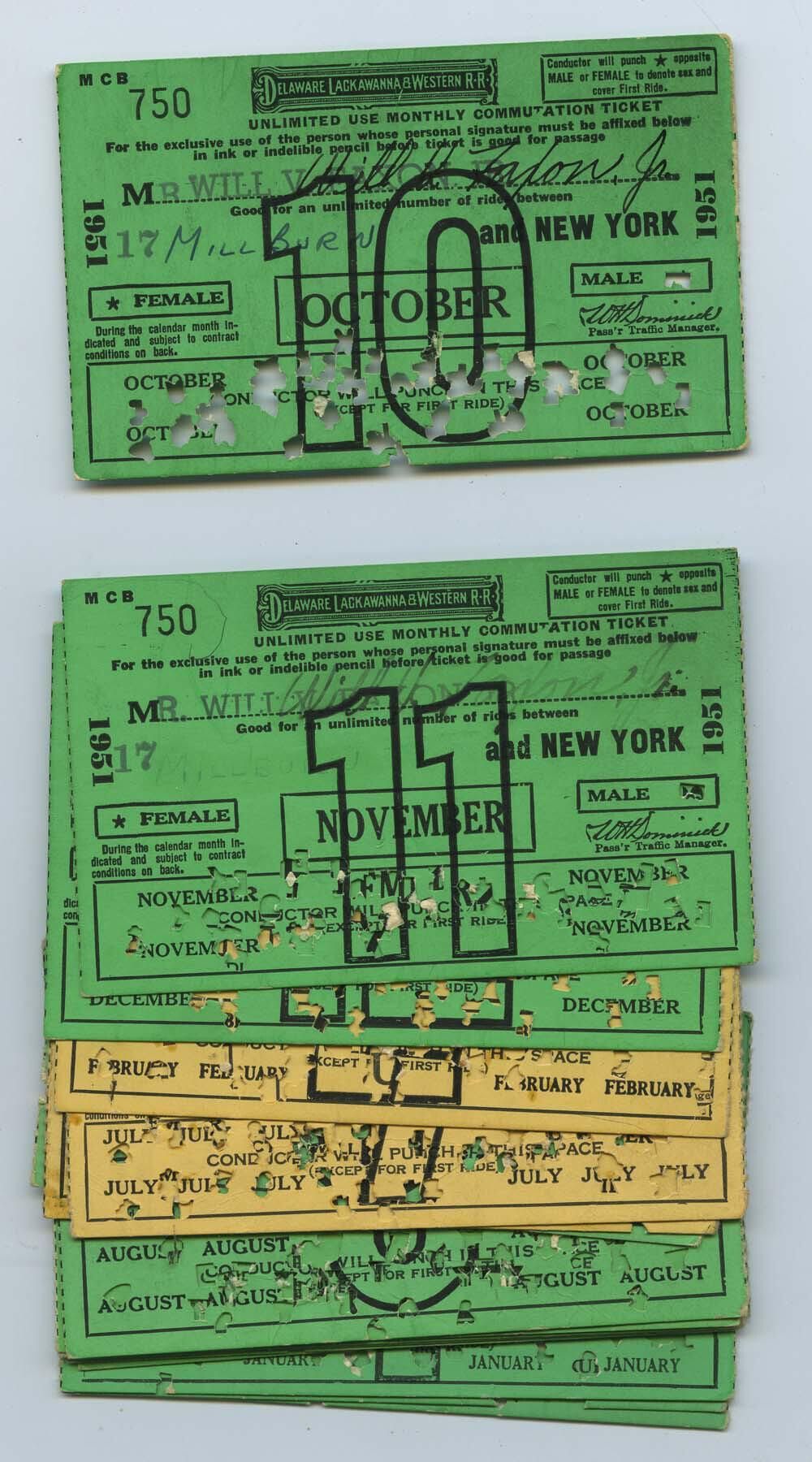 Faxon: William Faxon Delaware, Lackawanna & Western Commuter Tickets, 1951-1955Entry/Object ID