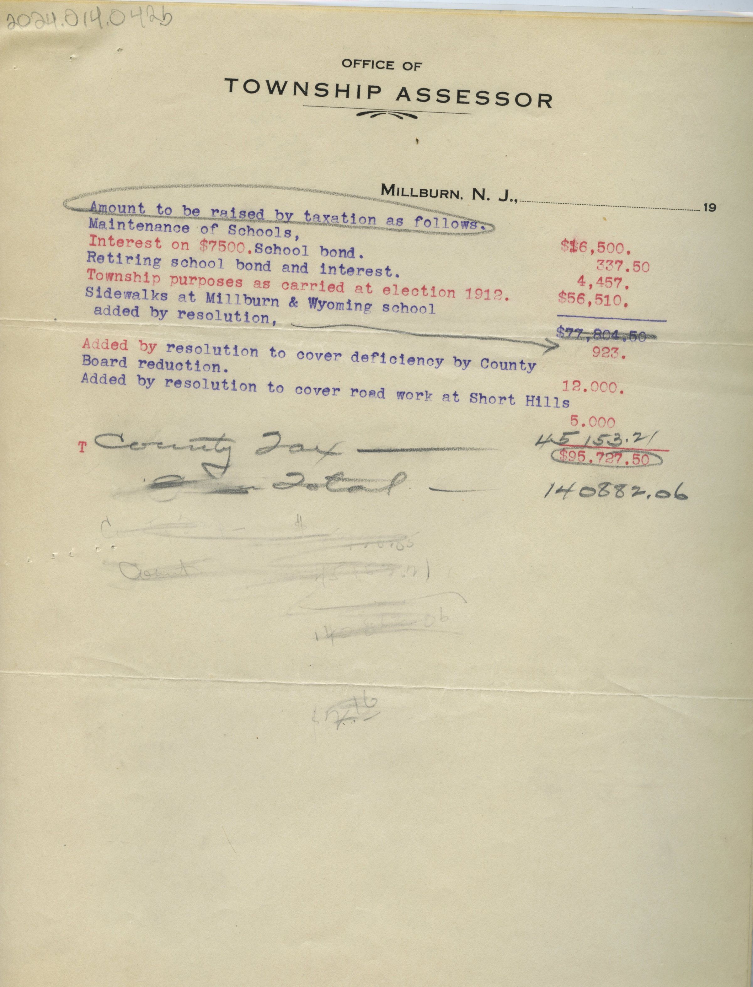 Wyoming Civic Association: Office of Township Assessor Taxation Information, 1914Entry/Object ID