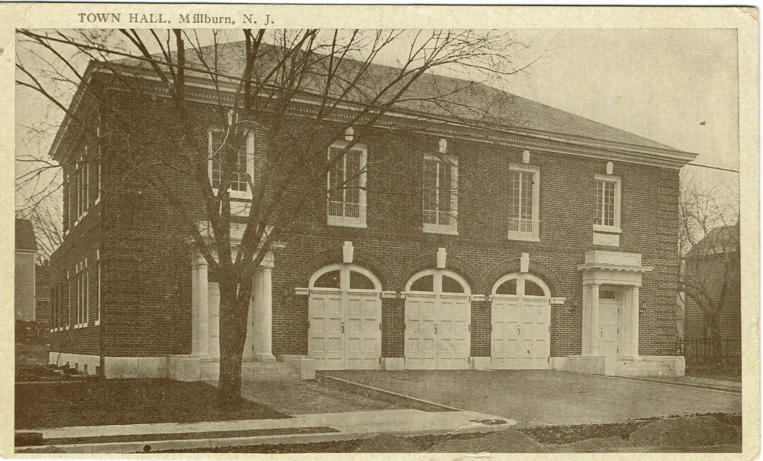 Photographic postcard of the Millburn Fire House, which was also the Town Hall (Municipal Building) showing garage doors closed. Postally unusedCollection
