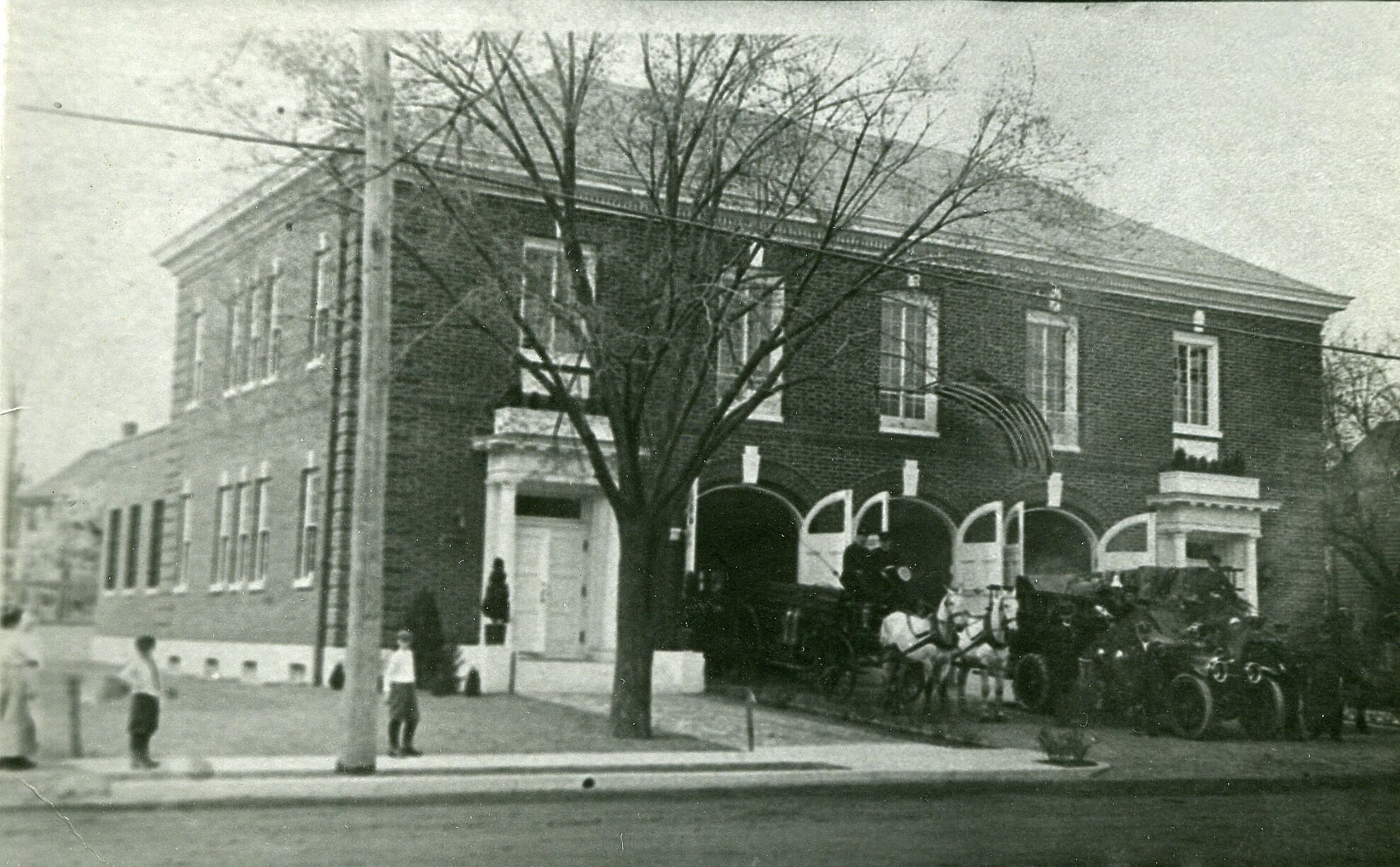 Fire Department: Firemen with Horses and Truck at Fire House/Town Hall