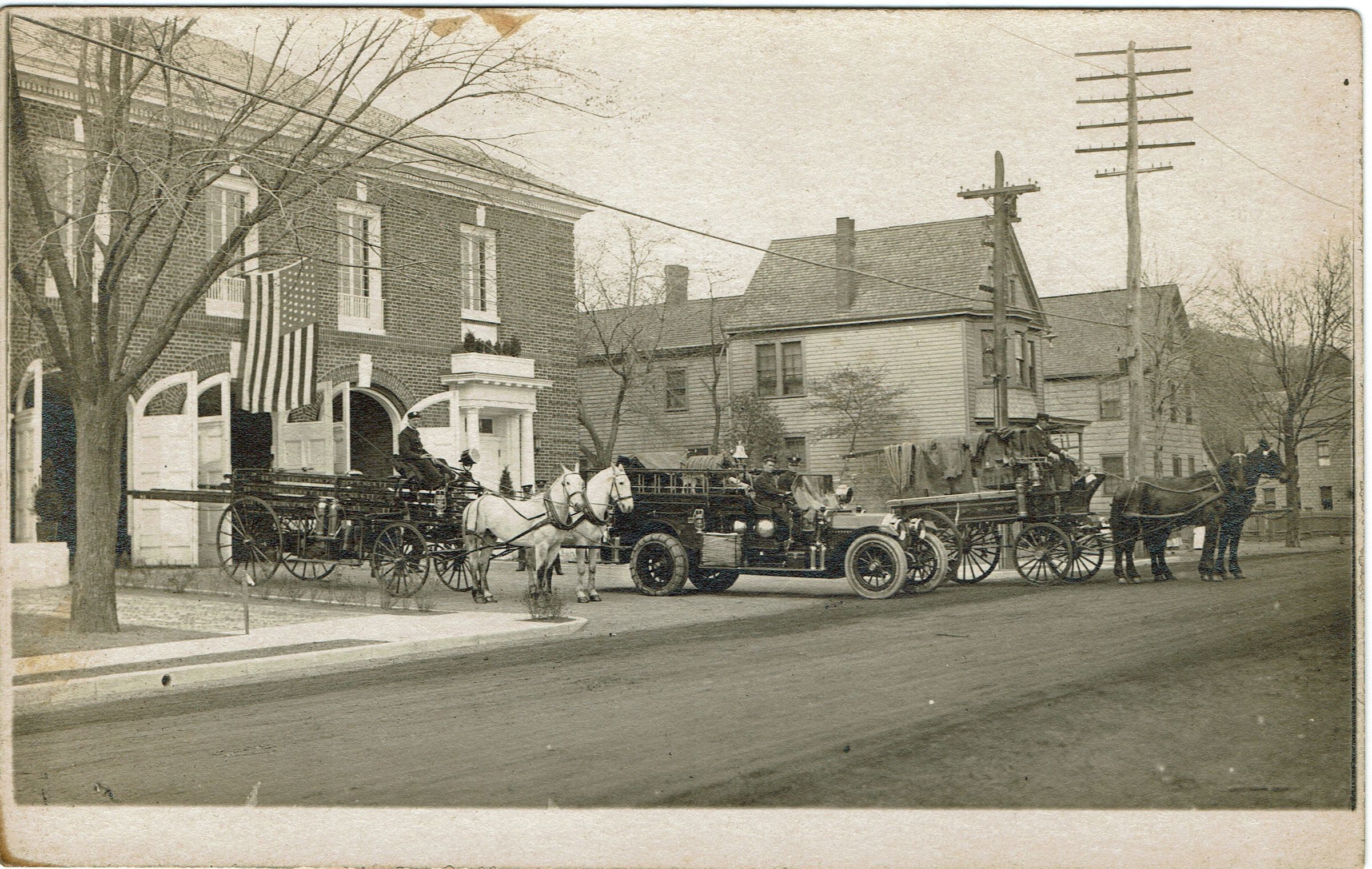 Fire Department: Horse-Drawn Fire Trucks in front of Millburn Fire House