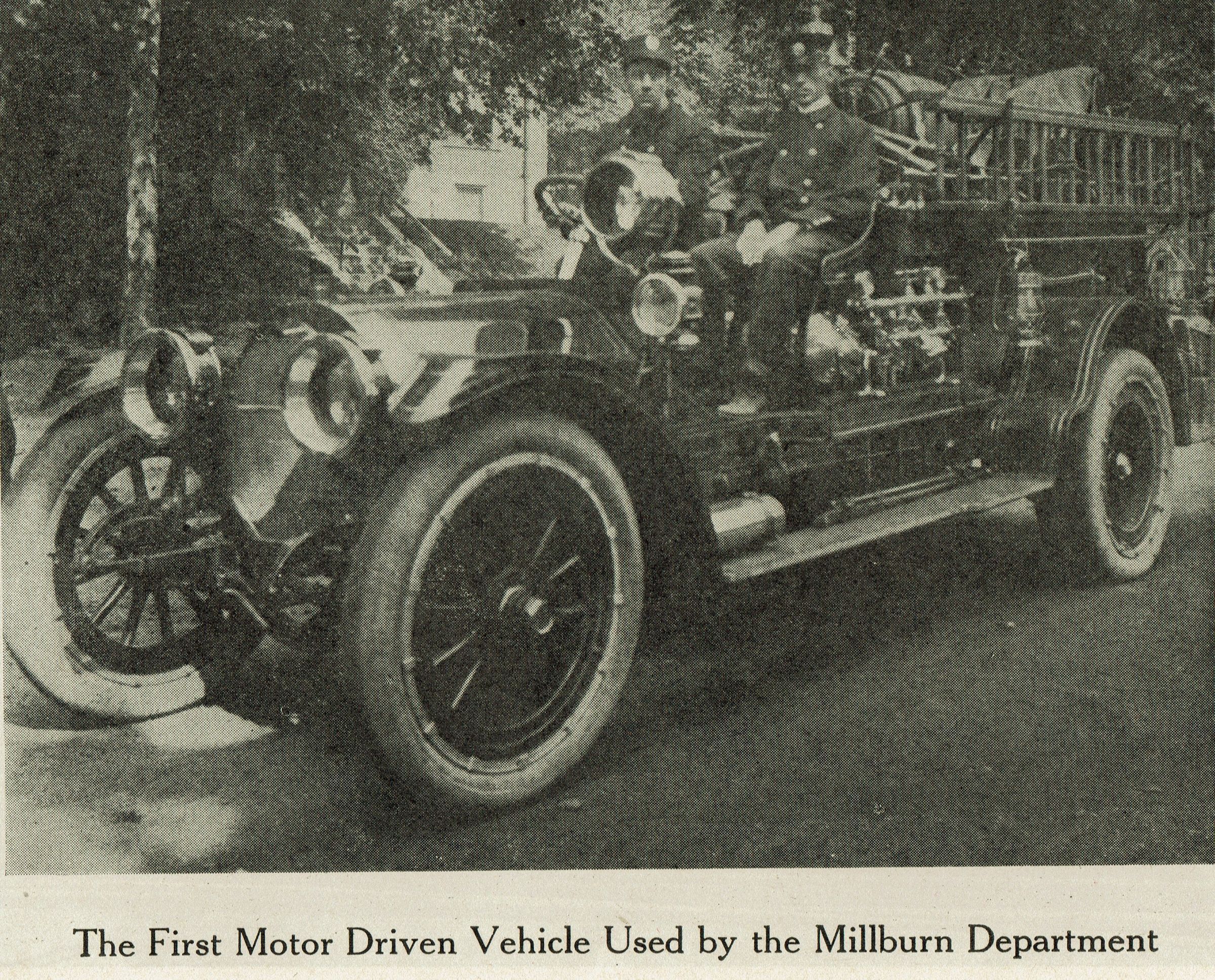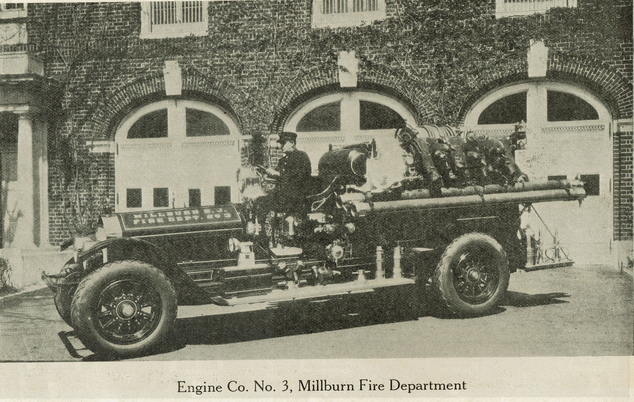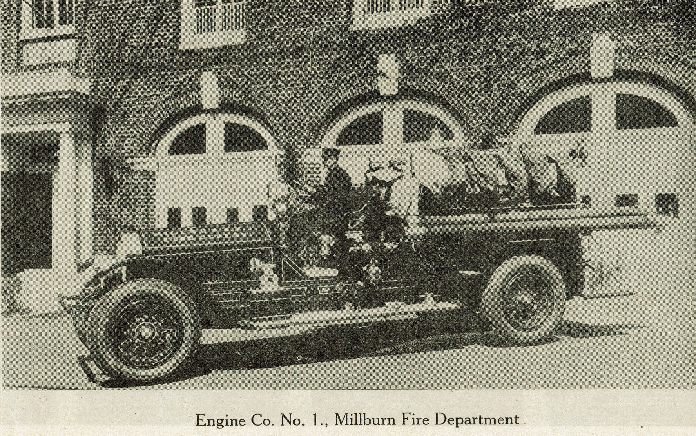 1927 Millburn Fire Department benefit performance program at the Millburn Theatre (Theater). Ca. 50-page softcover program with a red cover. The contents of the program include many ads for local and nearby businesses, a history of the MIllburn Fire Department, a list of the fire chiefs, photos of some of the chiefs, photos of fire trucks/apparatus/equipment, fire department headquarters buildings, photos of members of the fire department, photos of interior rooms in the department, etc.