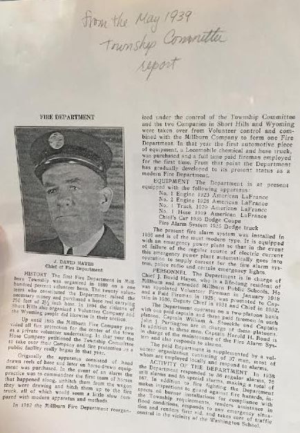 Fire Department Report From the Township Committee Budget Report - May, 1939
