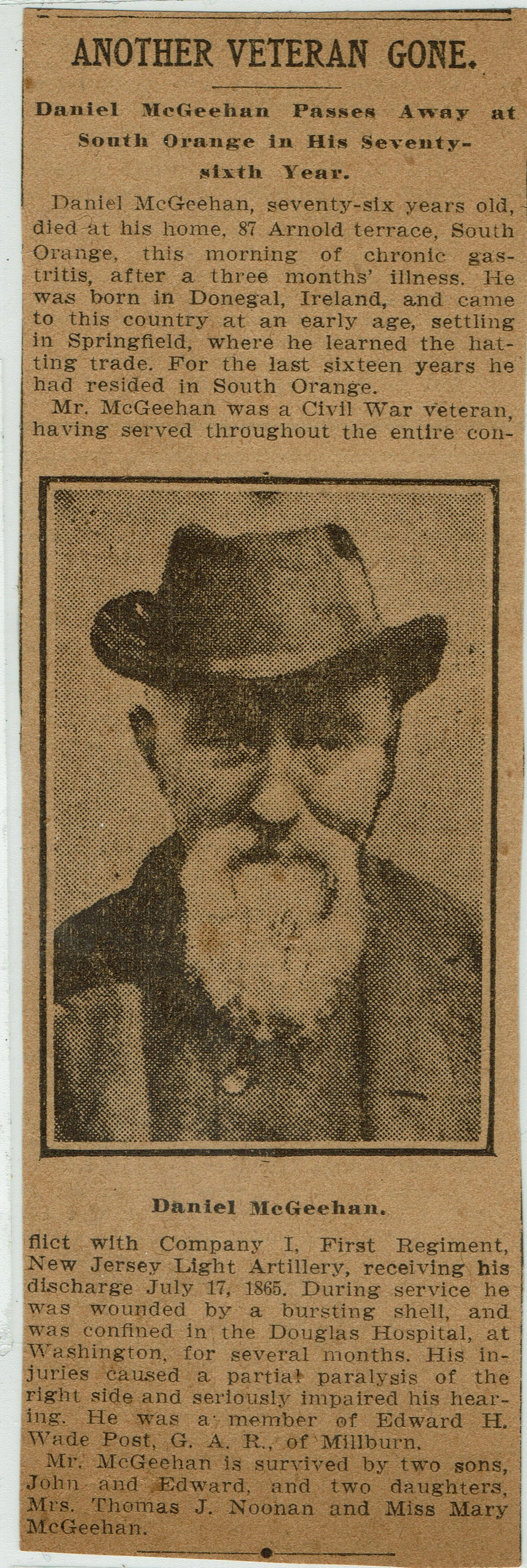 Flanagan: Daniel McGeehan, Civil War Veteran, Obituary, 1908