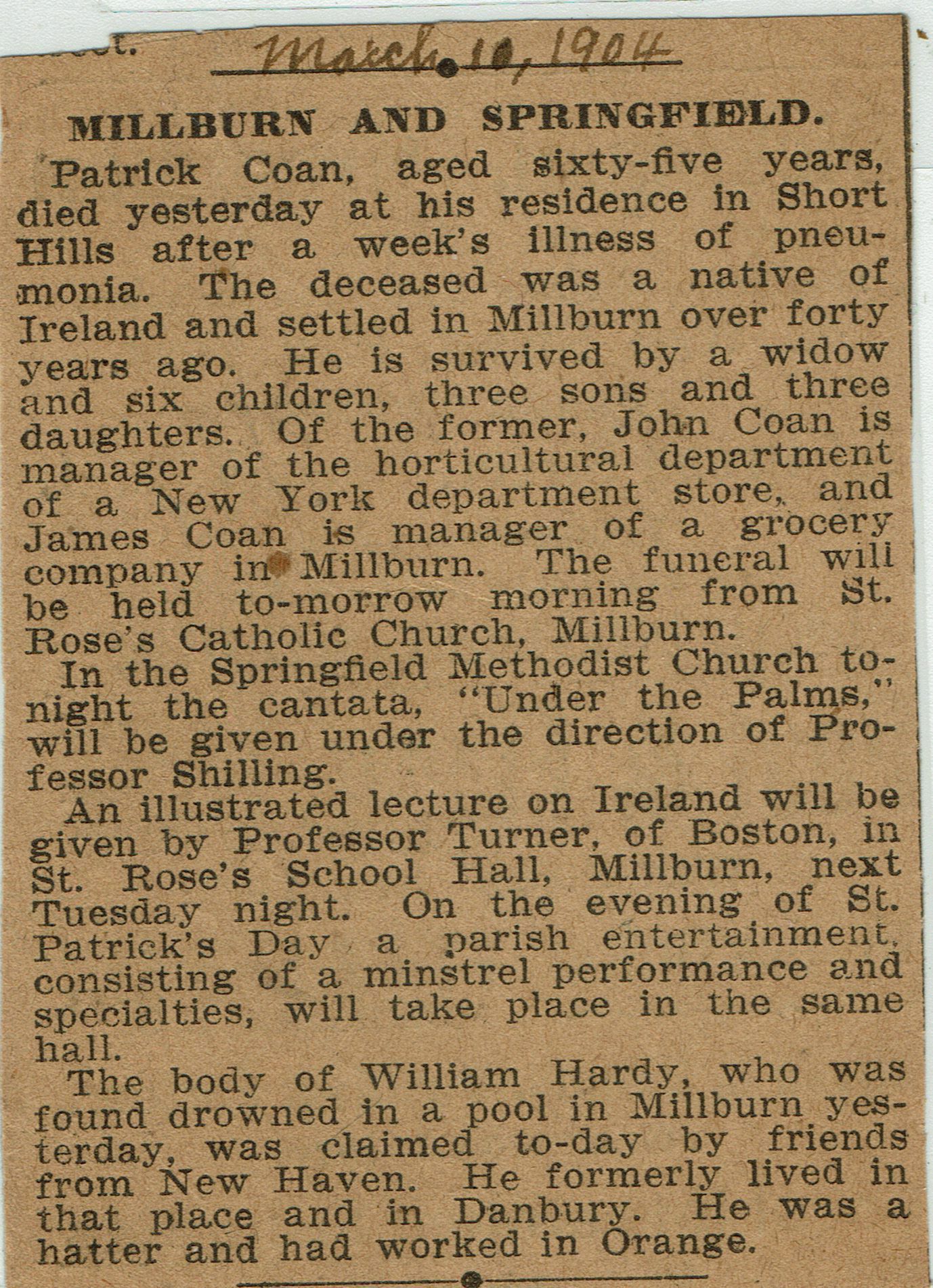 Flanagan: Patrick Coan and Hugh Oliver Obituary, 1904