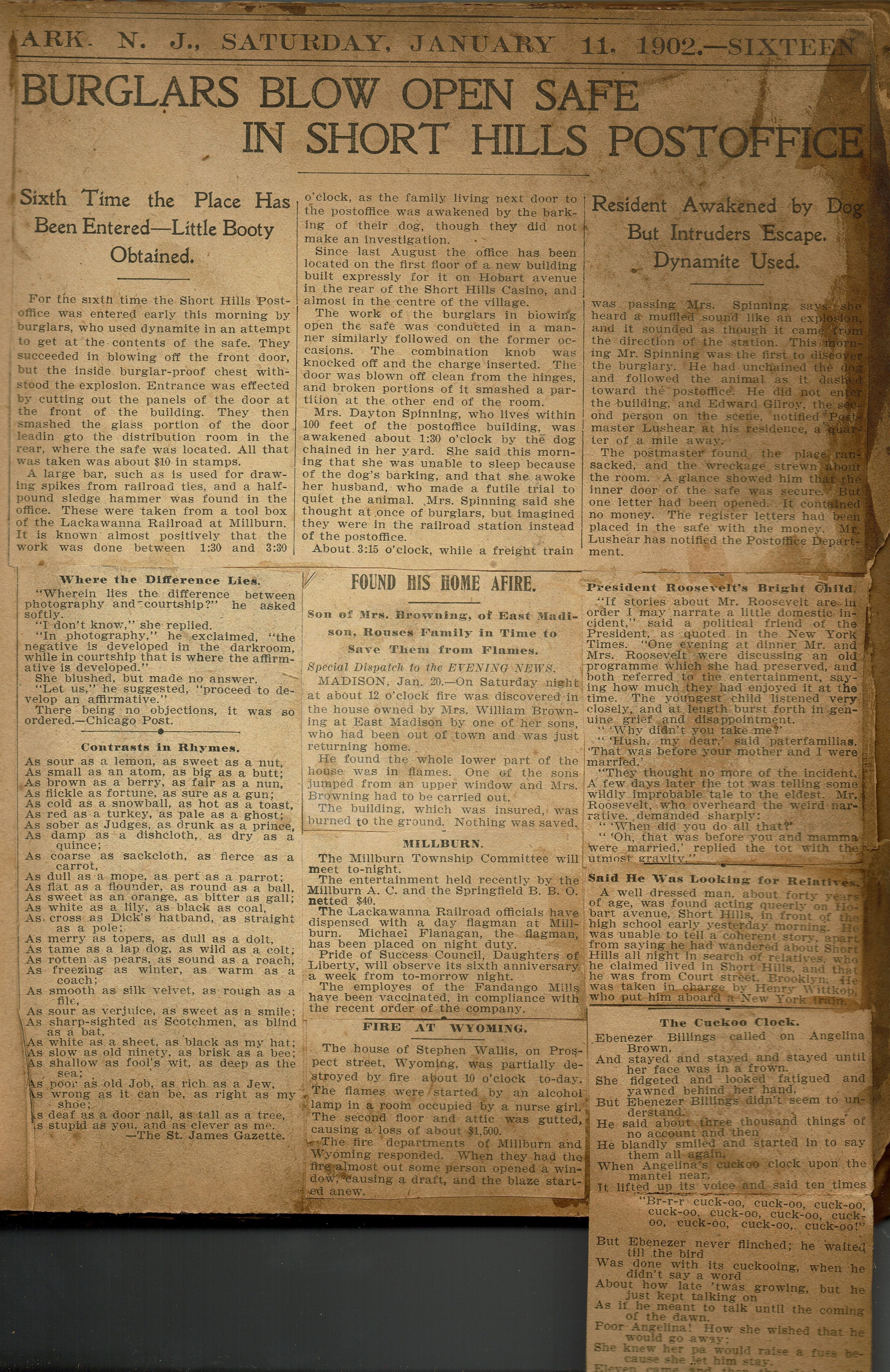 MILLBURN (Newark Evening News, Monday, January 20, 1902)