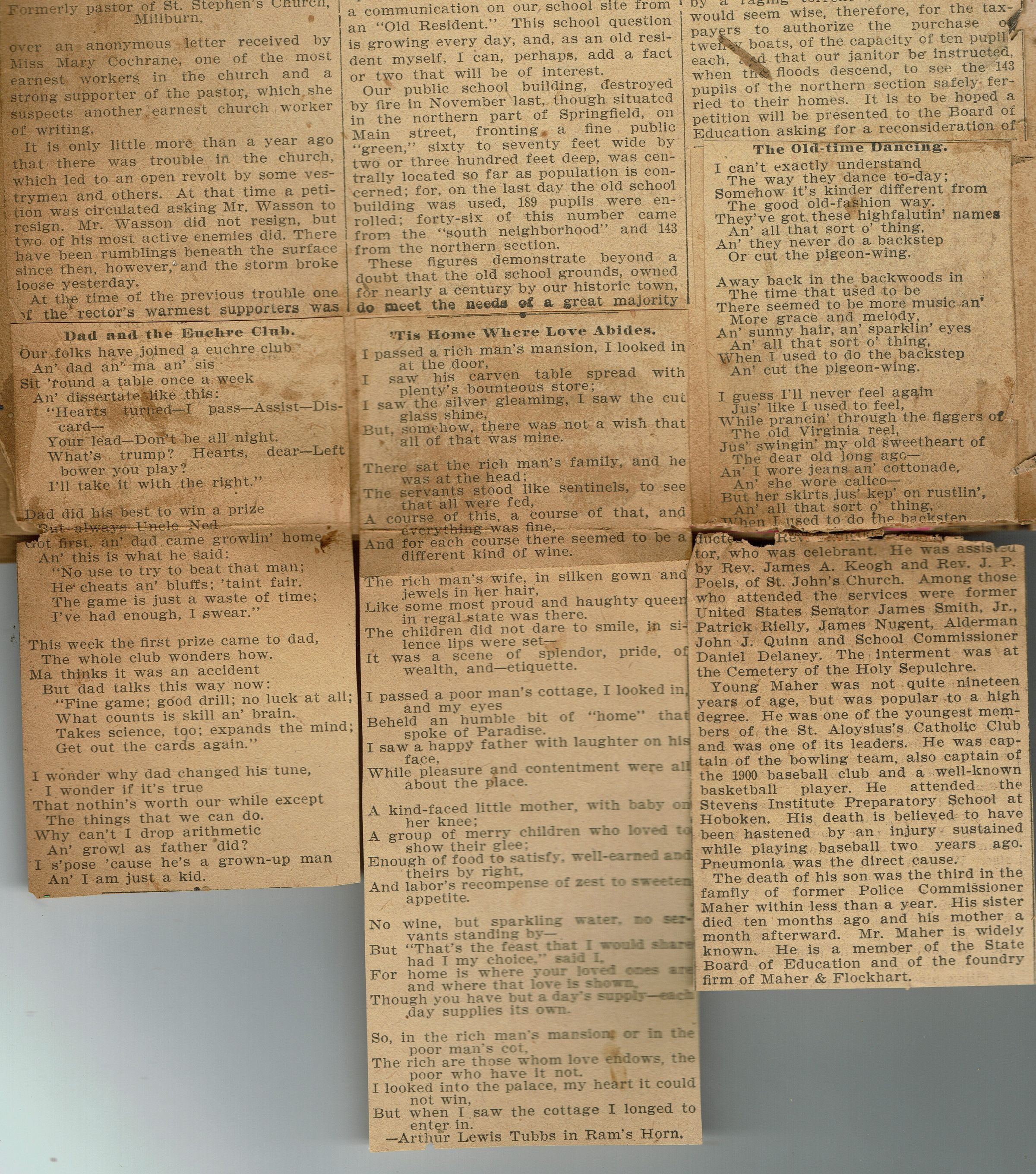 Newspaper clippings from page 24 of the scrapbook belonging to the Flanagan family (44 Mechanic Street, Millburn). Topics covered include scandal surrounding former pastor of St. Stephen's Church, Reverend W. A. Wasson.Collection