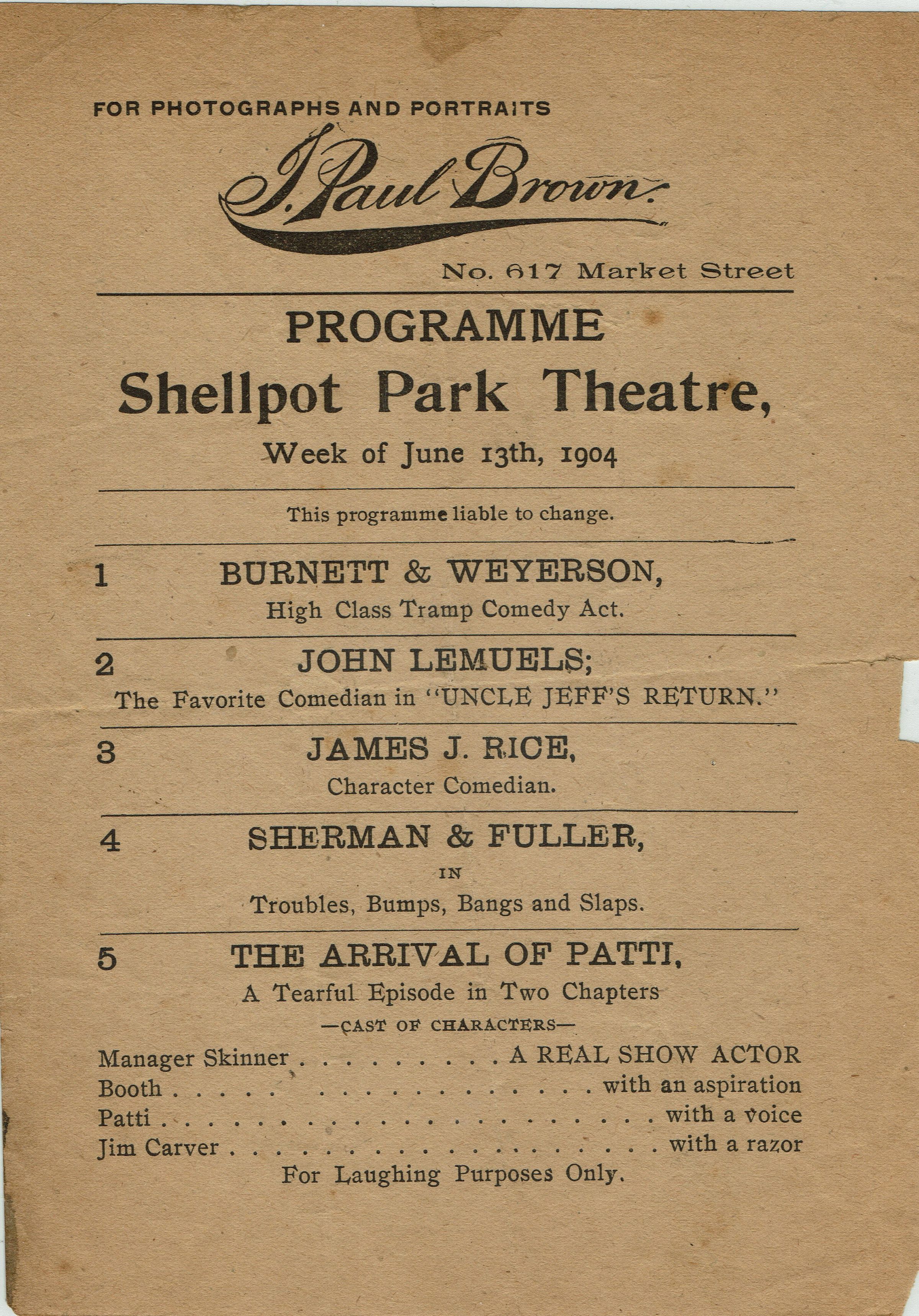 Flanagan: Shellpot Park Theatre Program, 1904