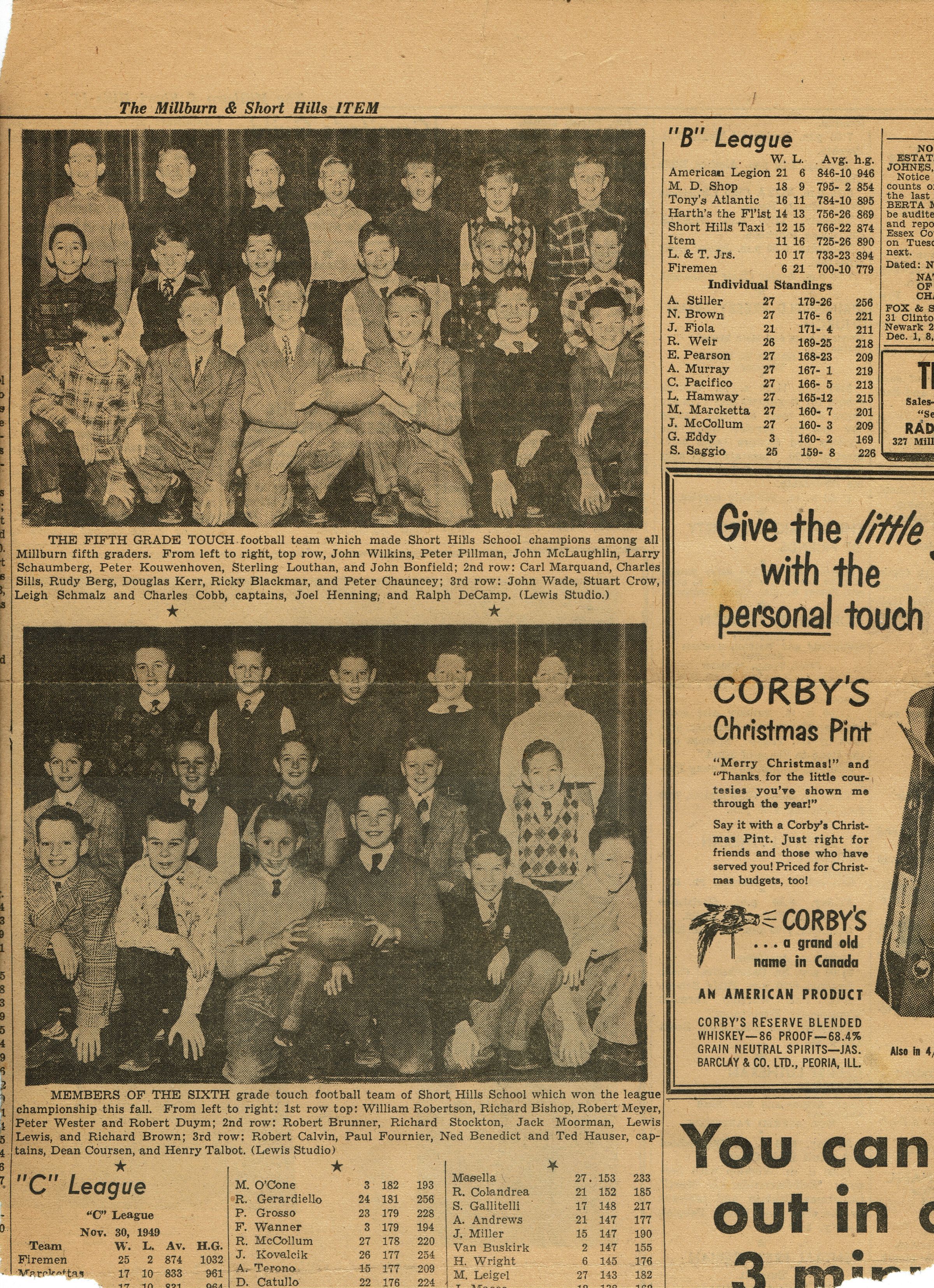 Photographs of the 5th and 6th grade Short Hills Elementary School Football Teams from the December 8, 1949 Item. Both Short Hills Elementary School teams won the Millburn inter-school championship for their grades.Acquisition