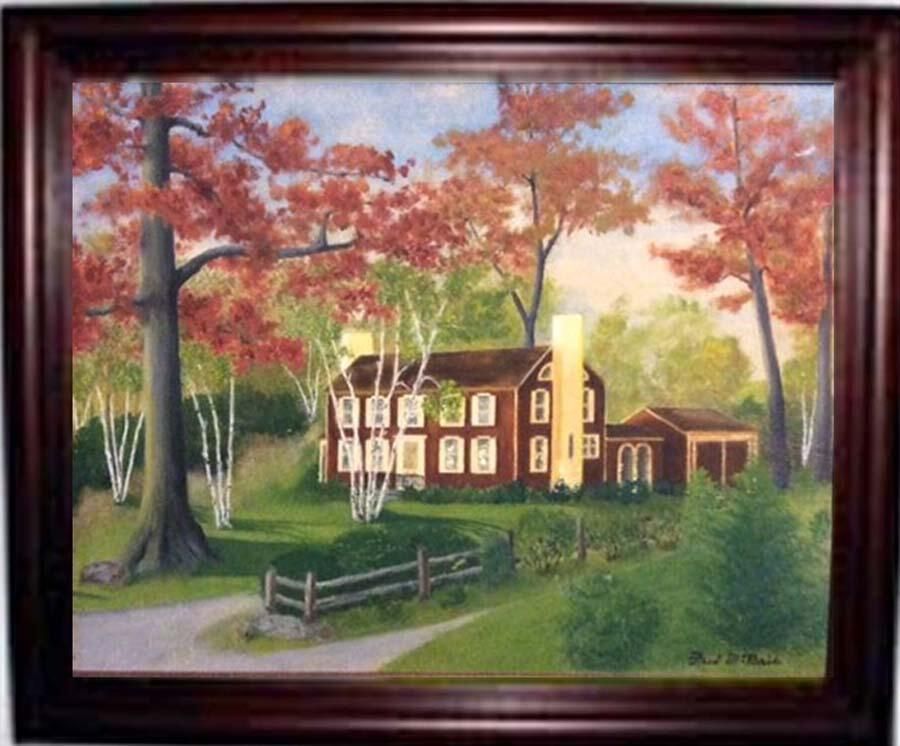 21" x 17" high framed oil painting on canvasboard. The artist is Fred McBride and the subject of the painting in the Prince's former house at 195 Highland Ave, SH.Acquisition