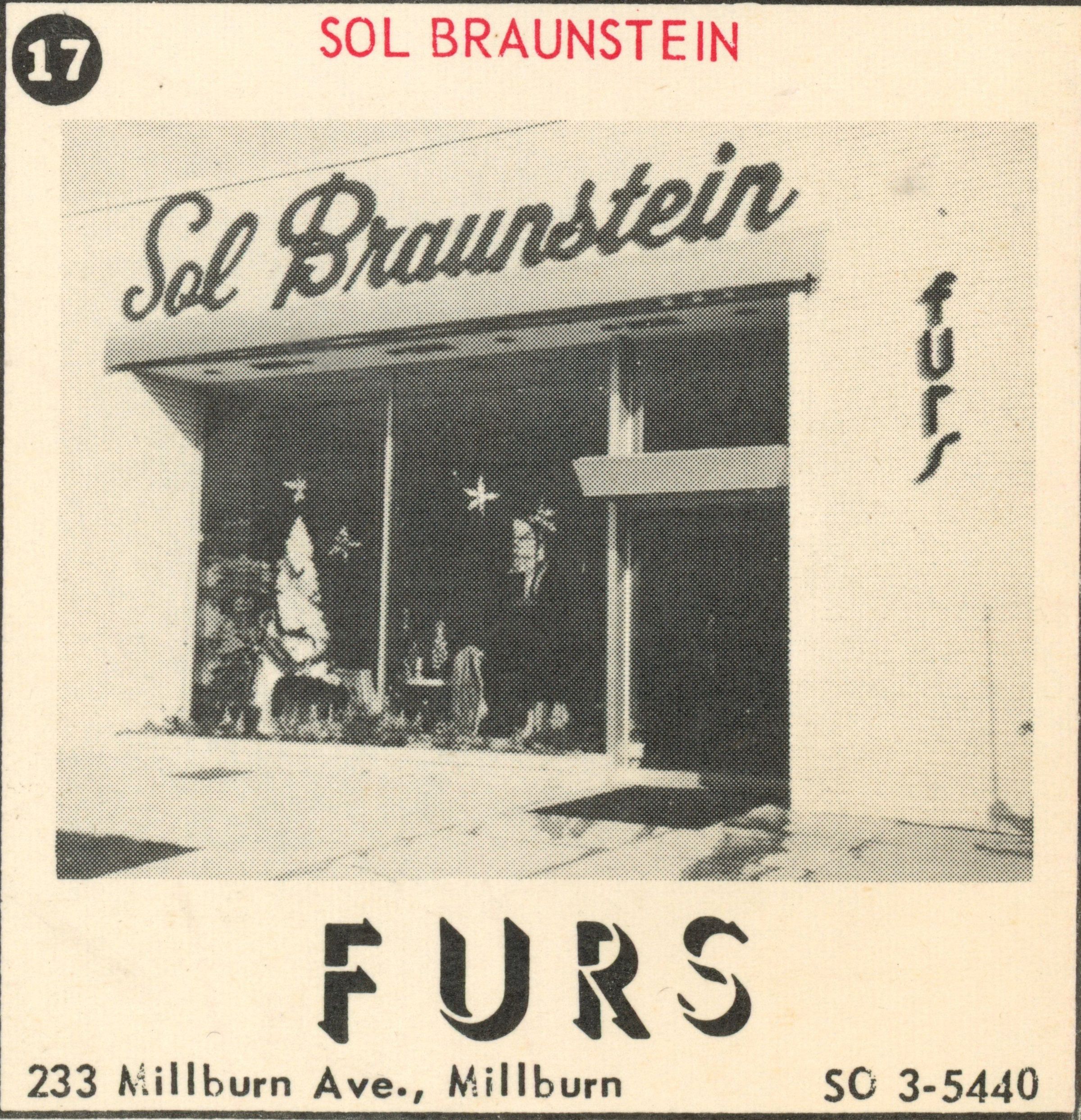 Furs: Sol Braunstein Furs, 233 Millburn Avenue, 1955Entry/Object ID