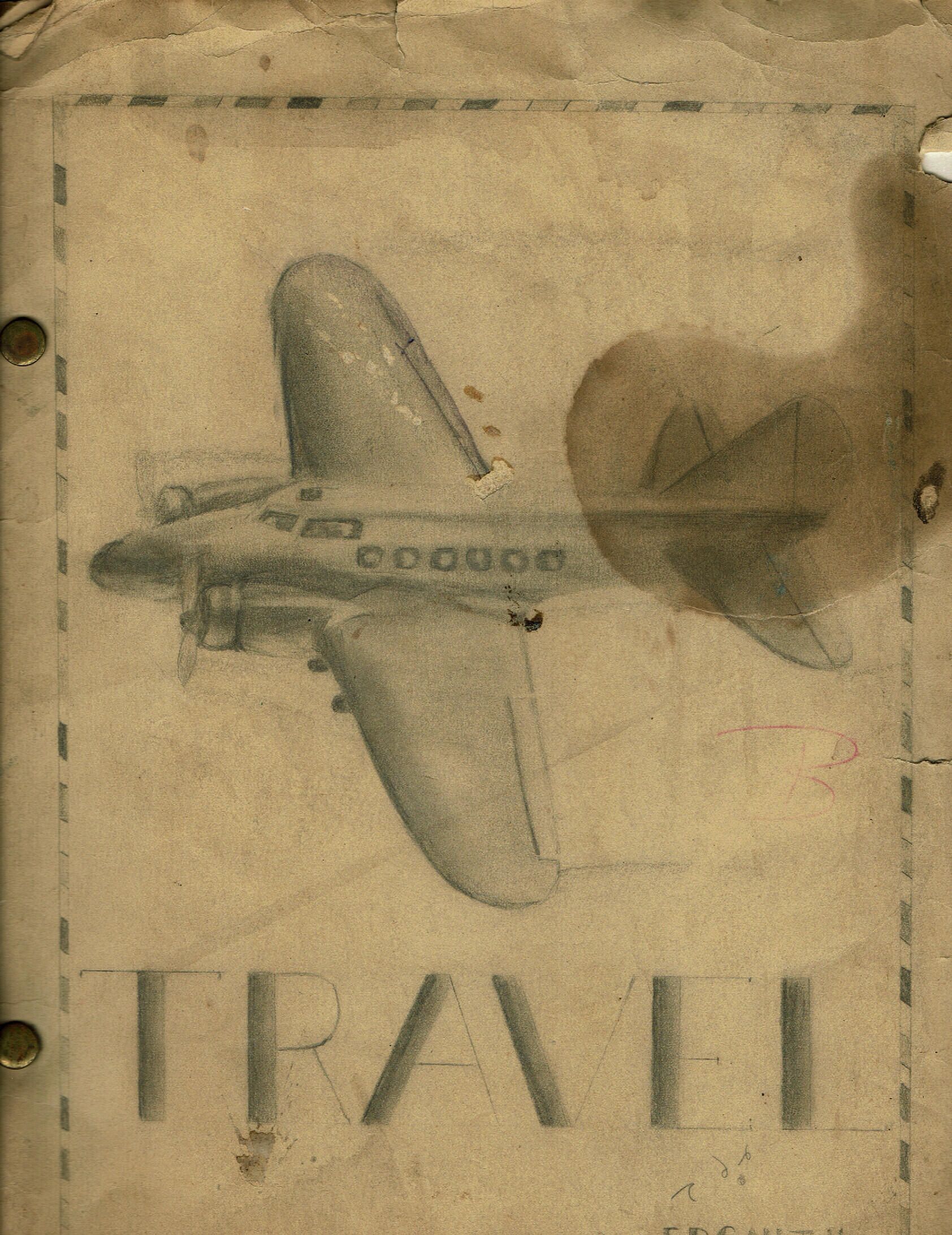 School Project with hand-written text and advertisements from 1935