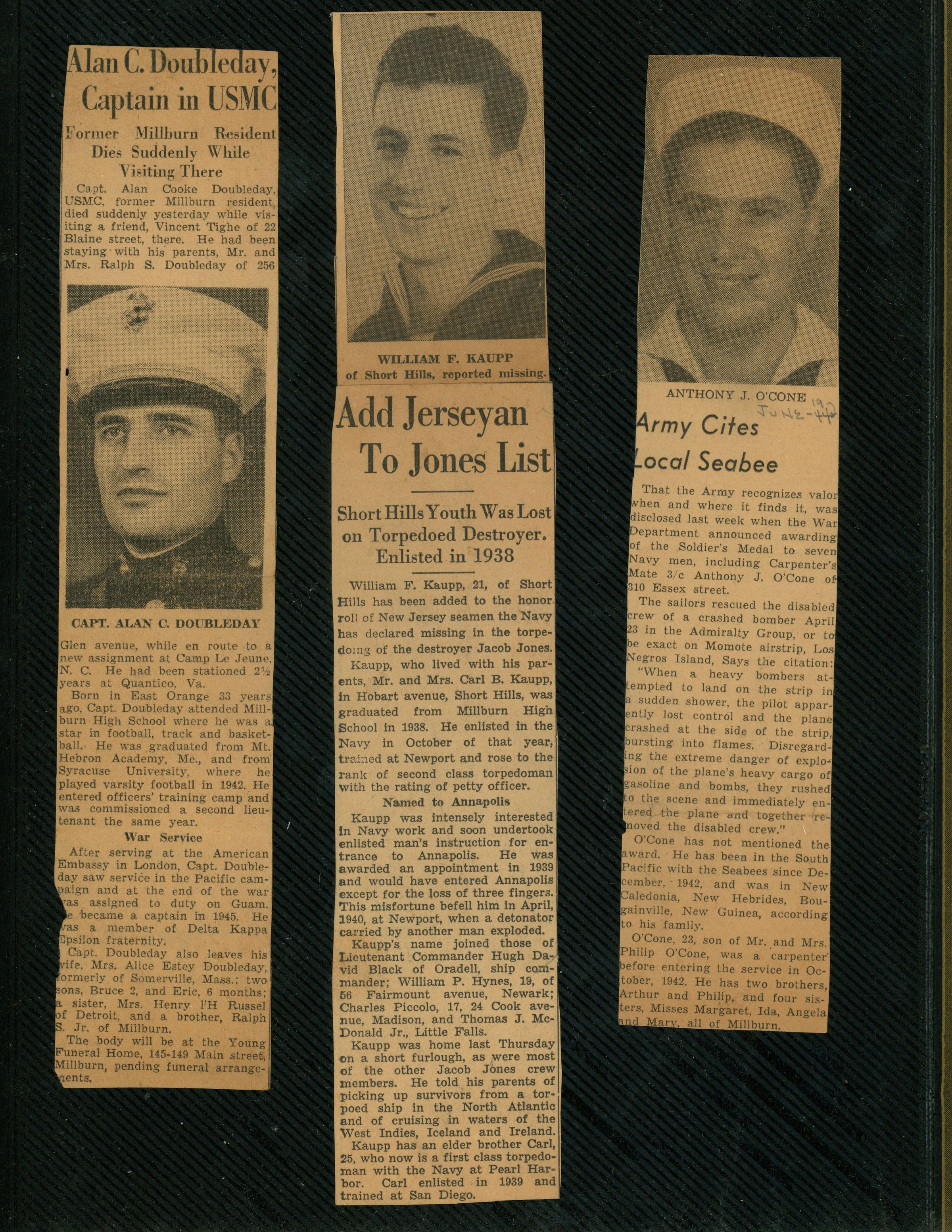 Gallitelli: World War II Clippings: Doubleday, Kaupp, O'Cone