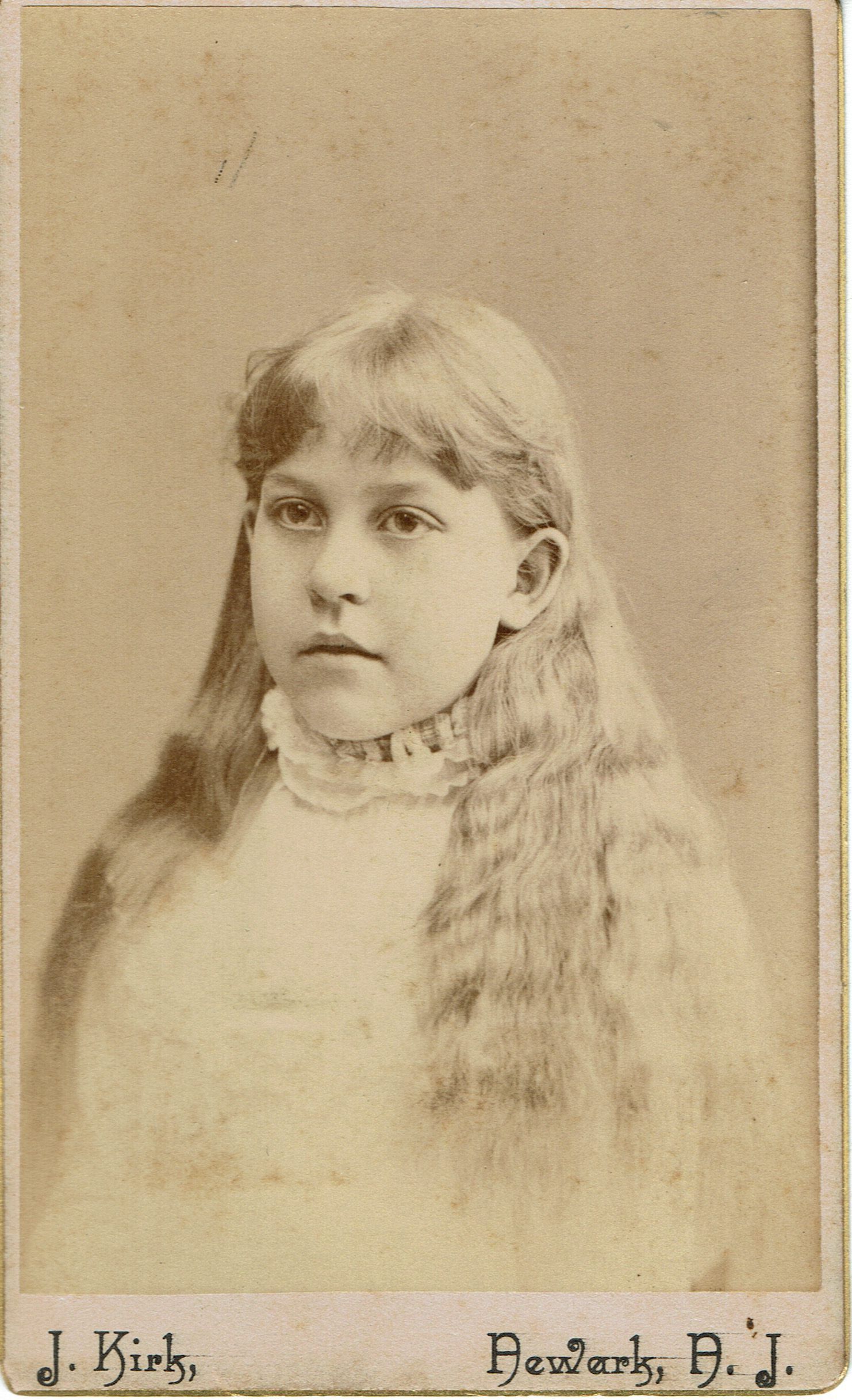 Carte de Visite photograph of Anna Augusta Gentzel (Woodruff) May 1, 1893-September 29, 1937. Photograph is identified on verso. Taken at J. Kirk Studio, Newark, N.J.Photograph Details