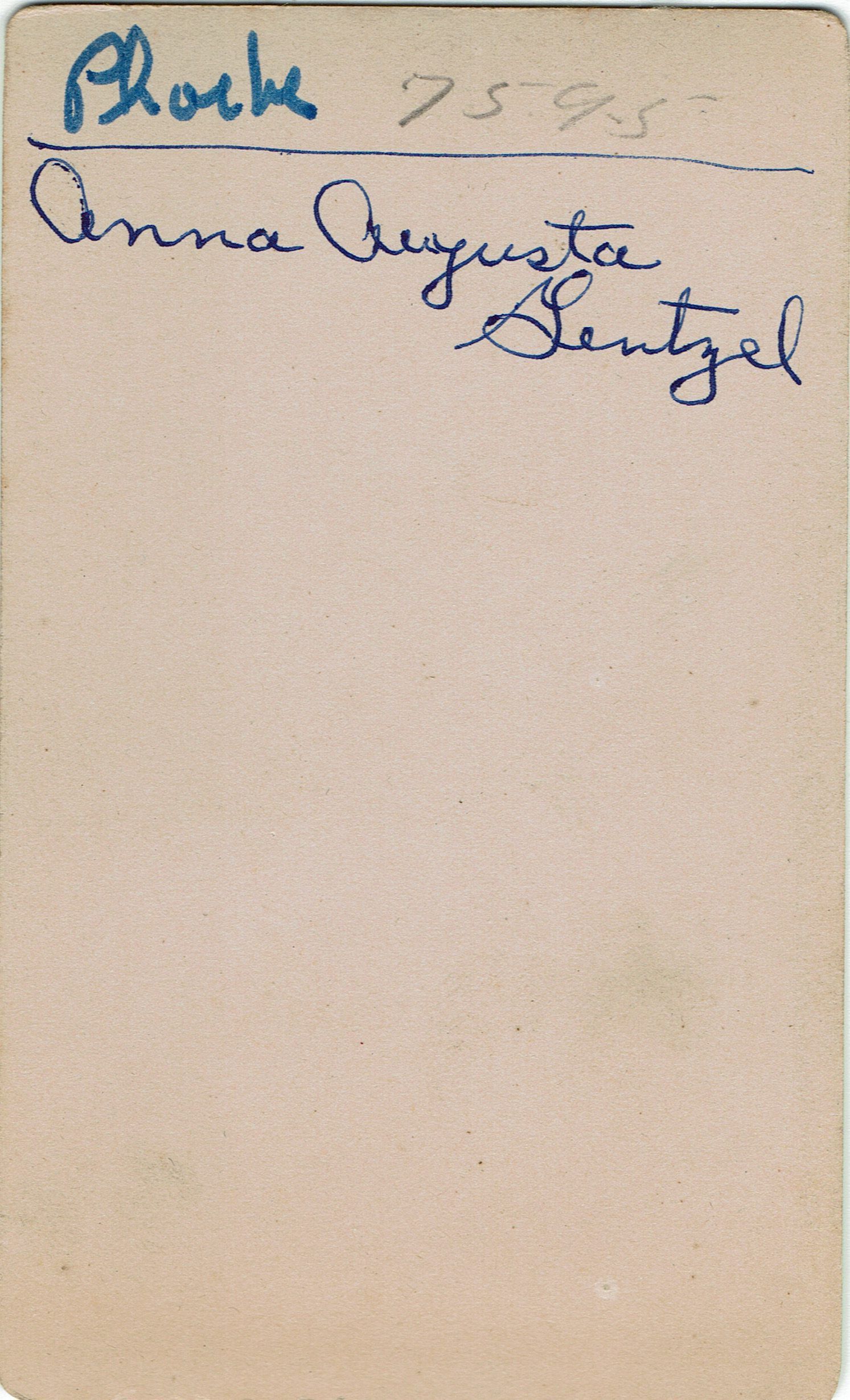 Gentzel: Anna Augusta Gentzel, c. 1883Entry/Object ID