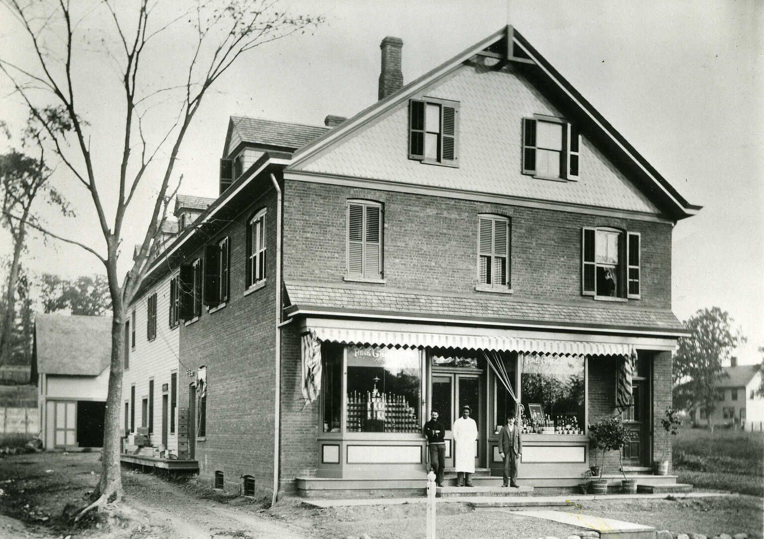 Several copies of this image exist in the collection. The photograph is dated October 19, 1897. Gentzel's market was the finest store in the area in its heyday. William Gentzel had an smaller store on the north side of Taylor Street, near Main Street. This building was located at the northeast corner of Millburn Avenue and Spring Street and is still standing as of 2024. The photograph was taken by Edwin D. Pannell.Collection